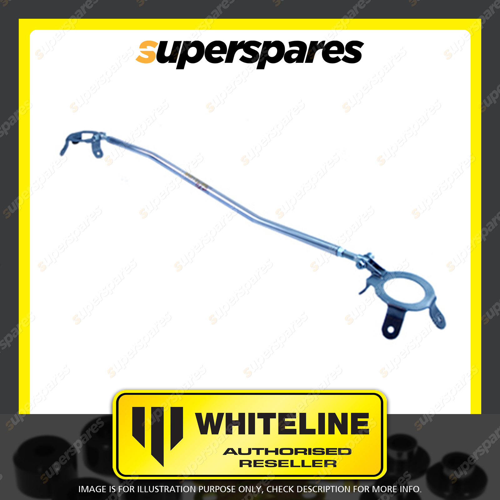 | Contents : Whiteline Front strut tower Brace Warranty : 3 Year / 60,000Kms Kit Contents : 1 Strut Brace, Install Guide | Kit Specifications : Material : Polished Alloy |