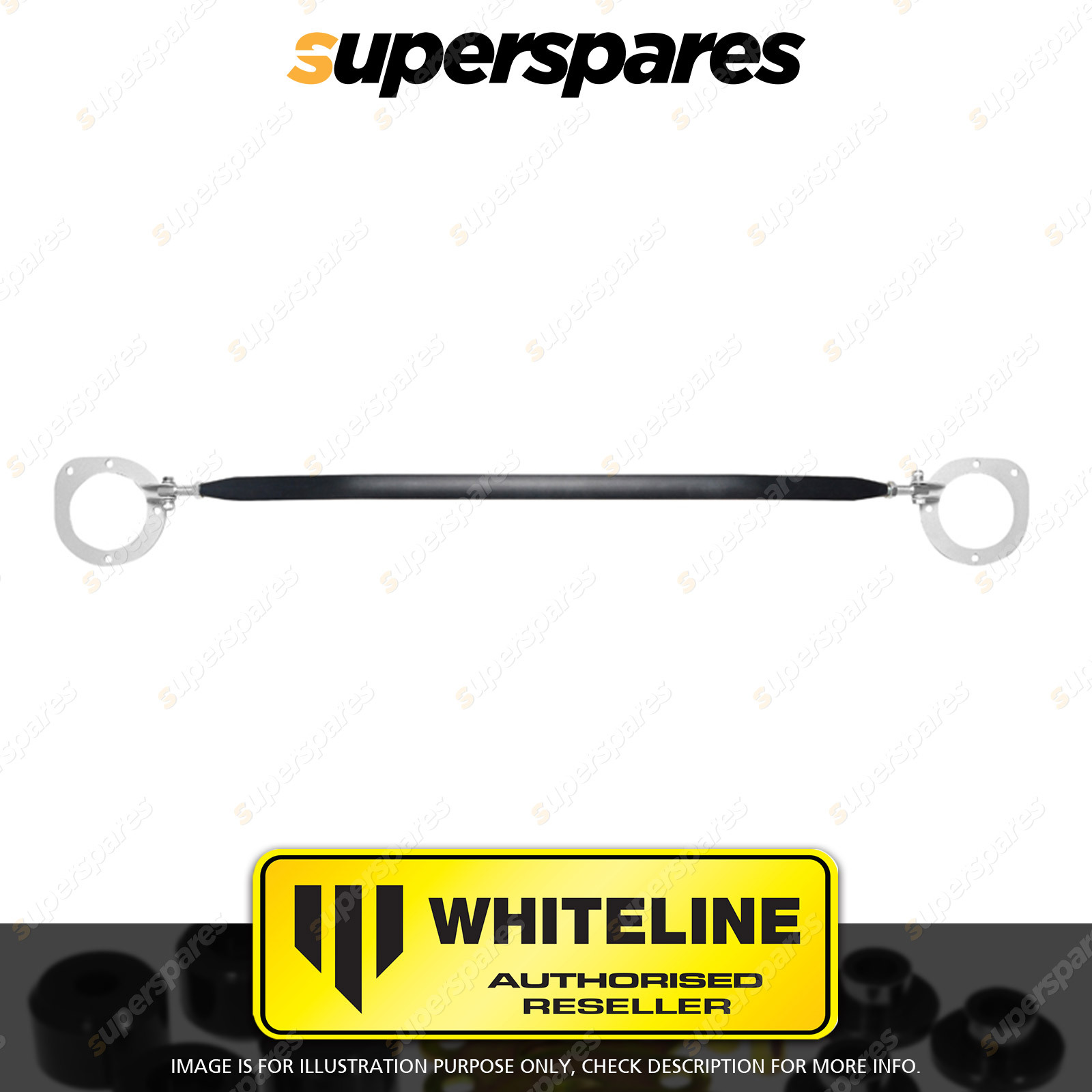 Whiteline Strut bracing, strut bars, strut tower bracing Weight aside, the more the better. Chassis bracing maintains alignment angles and spring rates by greatly reducing body or chassis flex. In fact, it helps every component in the suspension system do its job properly and you can feel the difference through improved turn-in, sharper steering response along with greater steering feedback. Whiteline strut bars/ strut brace/ strut tower bars not only makes your vehicle handle better they look great on the car as they feature premium polished alloy materials and powder coated end brackets. | |