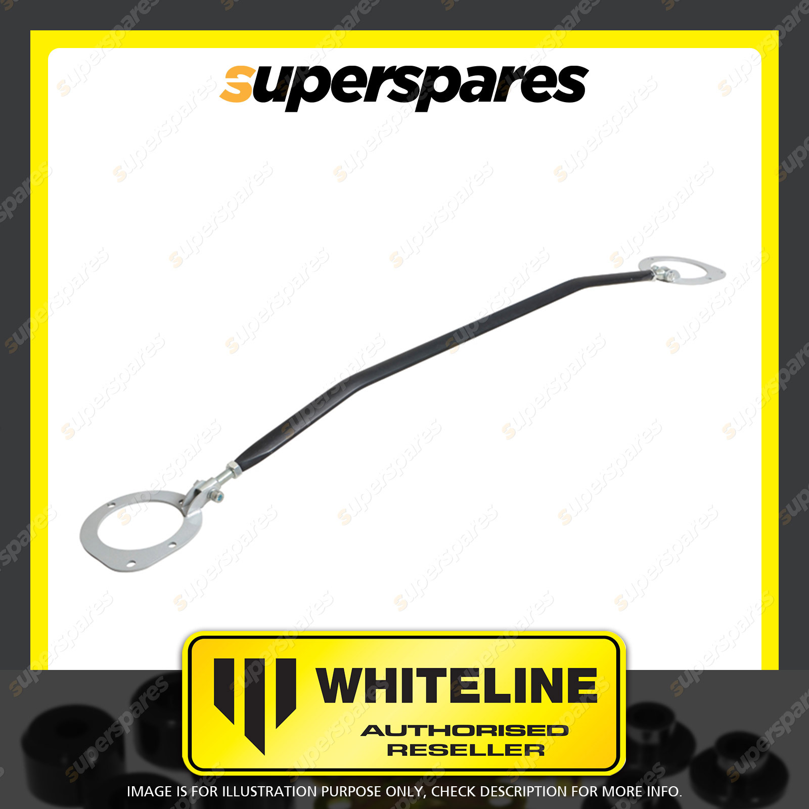 | Contents : Whiteline Front strut tower Brace Warranty : 3 Year / 60,000Kms Kit Contents : 1 Strut Brace, Install Guide |