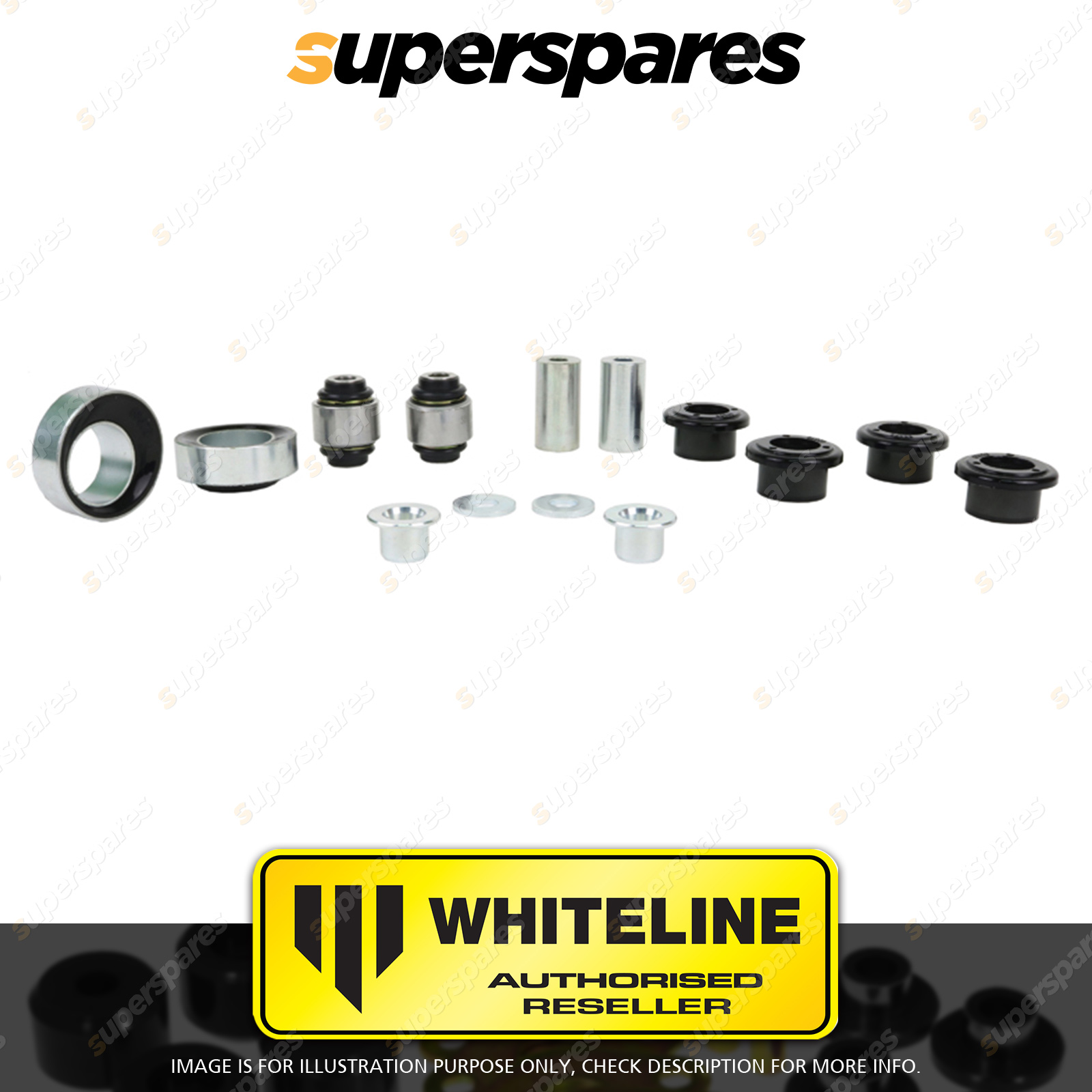| Contents : Whiteline Front Control arm - geometry correction kit Warranty : 3 Year / 60,000Kms Kit Contents : 2 Shell Bushings, 4 Bushings, 2 Tubes, 4 Washers, Install Guide, Grease | Kit Specifications : Alignment Type : Anti Lift / Caster / Bumpsteer |