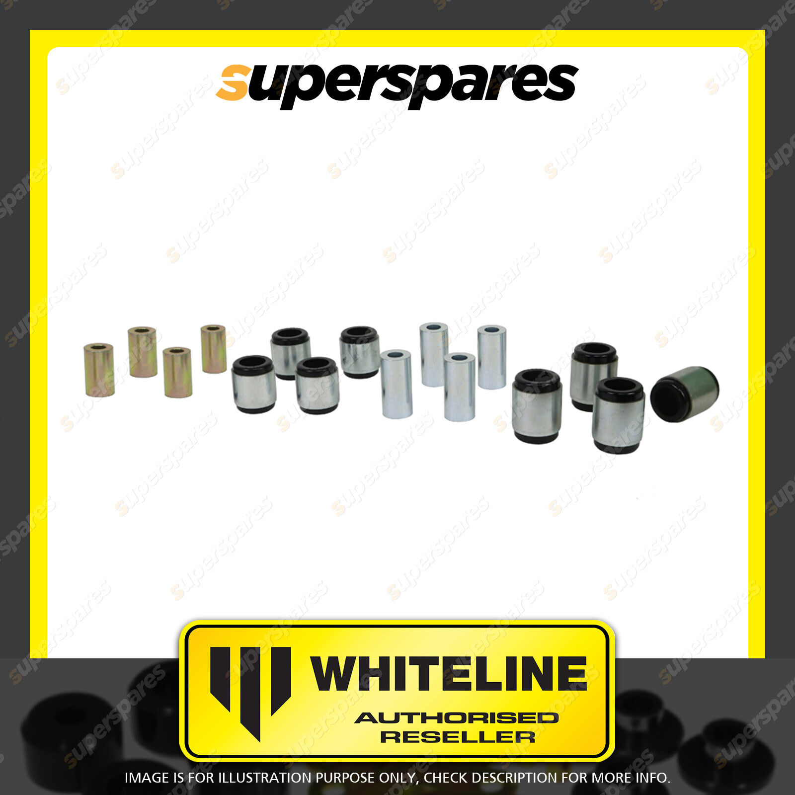 | Contents : Whiteline Front Control Arm Kit Warranty : 3 Year / 60,000Kms Kit Contents : 8 Shell Bushings, 8 Tubes, Grease |