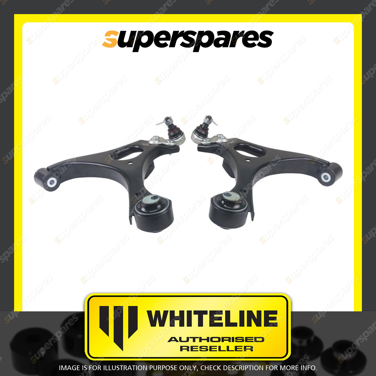 | Contents : Whiteline Front Control Arm Lower - Arm Assembly Warranty : 3 Year / 60,000Kms Kit Contents : 2 Arms |