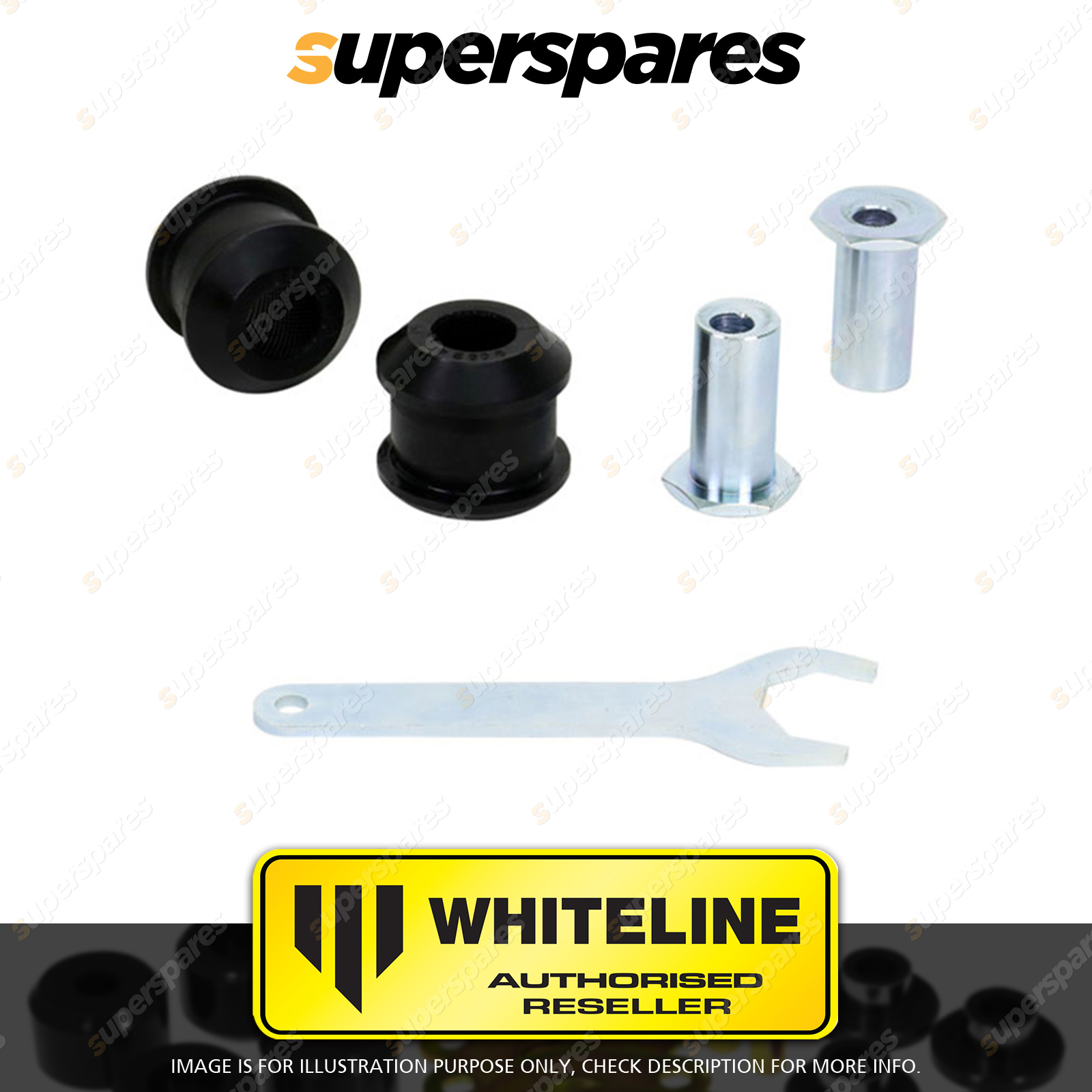 | Contents : Whiteline Front Control arm - lower bushing Warranty : 3 Year / 60,000Kms Kit Contents : 2 Bushings, 2 Tubes, Adjusting Tool, Install Guide, Grease | Kit Specifications : Bush Qty : 2 |