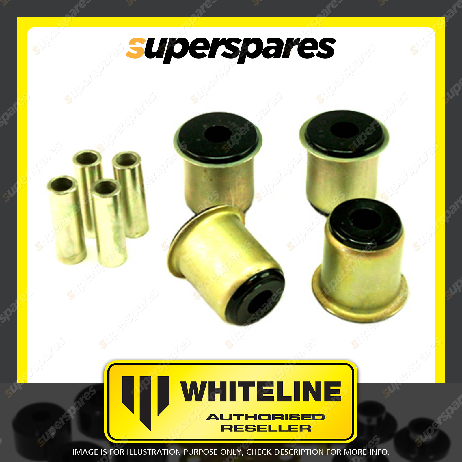 | Contents : Whiteline Front Control arm - lower inner bushing Warranty : 3 Year / 60,000Kms Kit Contents : 4 Shell Bushings, 4 Tubes, Grease |