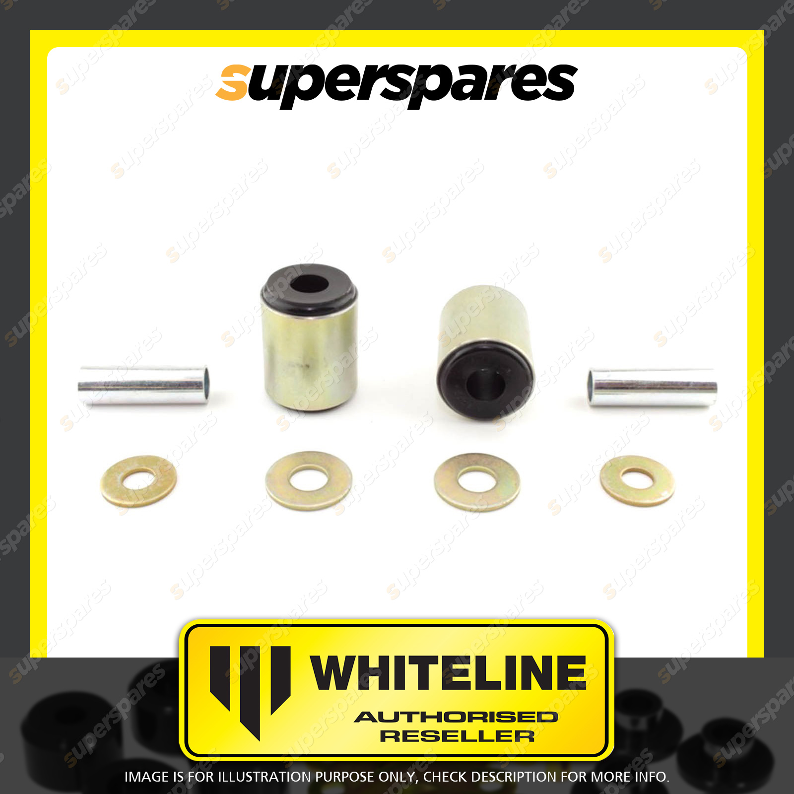 | Contents : Whiteline Front Control arm - lower inner Rear bushing Warranty : 3 Year / 60,000Kms Kit Contents : 2 Shell Bushings, 2 Tubes, 4 Washers, Grease |