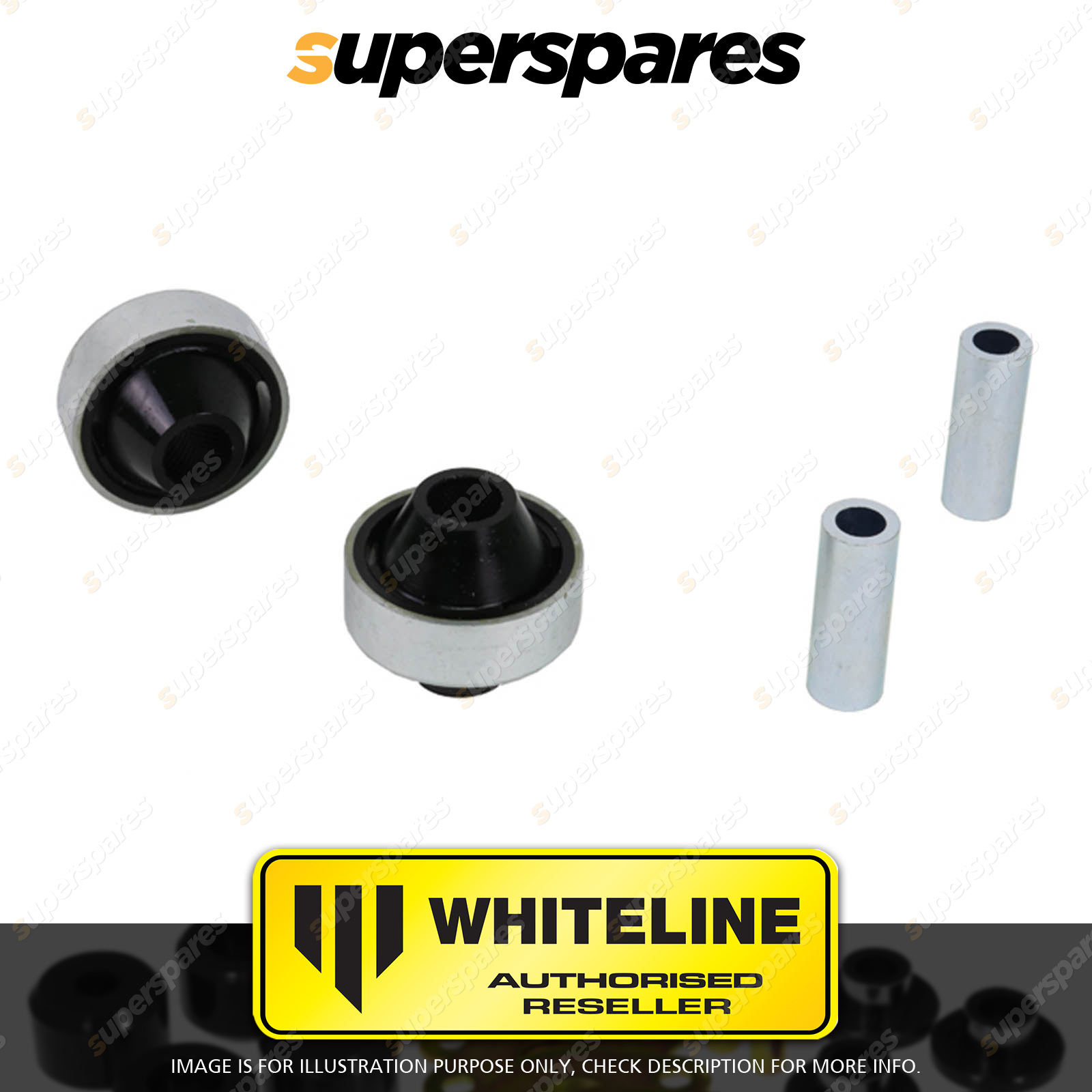 | Contents : Whiteline Front Control arm - lower inner Rear bushing Warranty : 3 Year / 60,000Kms Kit Contents : 2 Shell Bushings, 2 Tubes, Install Guide, Grease |