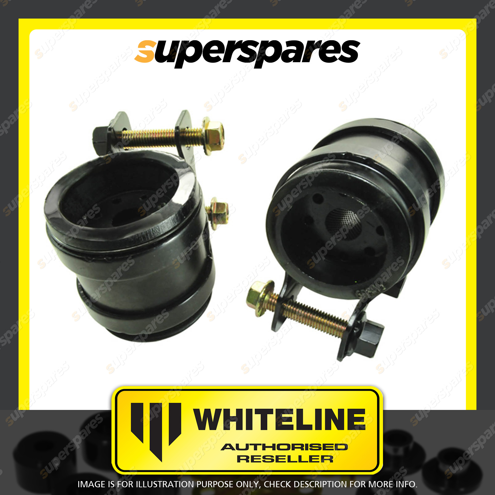 | Contents : Whiteline Front Control arm - lower inner Rear bushing Warranty : 3 Year / 60,000Kms Kit Contents : 2 Housings, 4 Bolts, 4 Nuts, Grease |