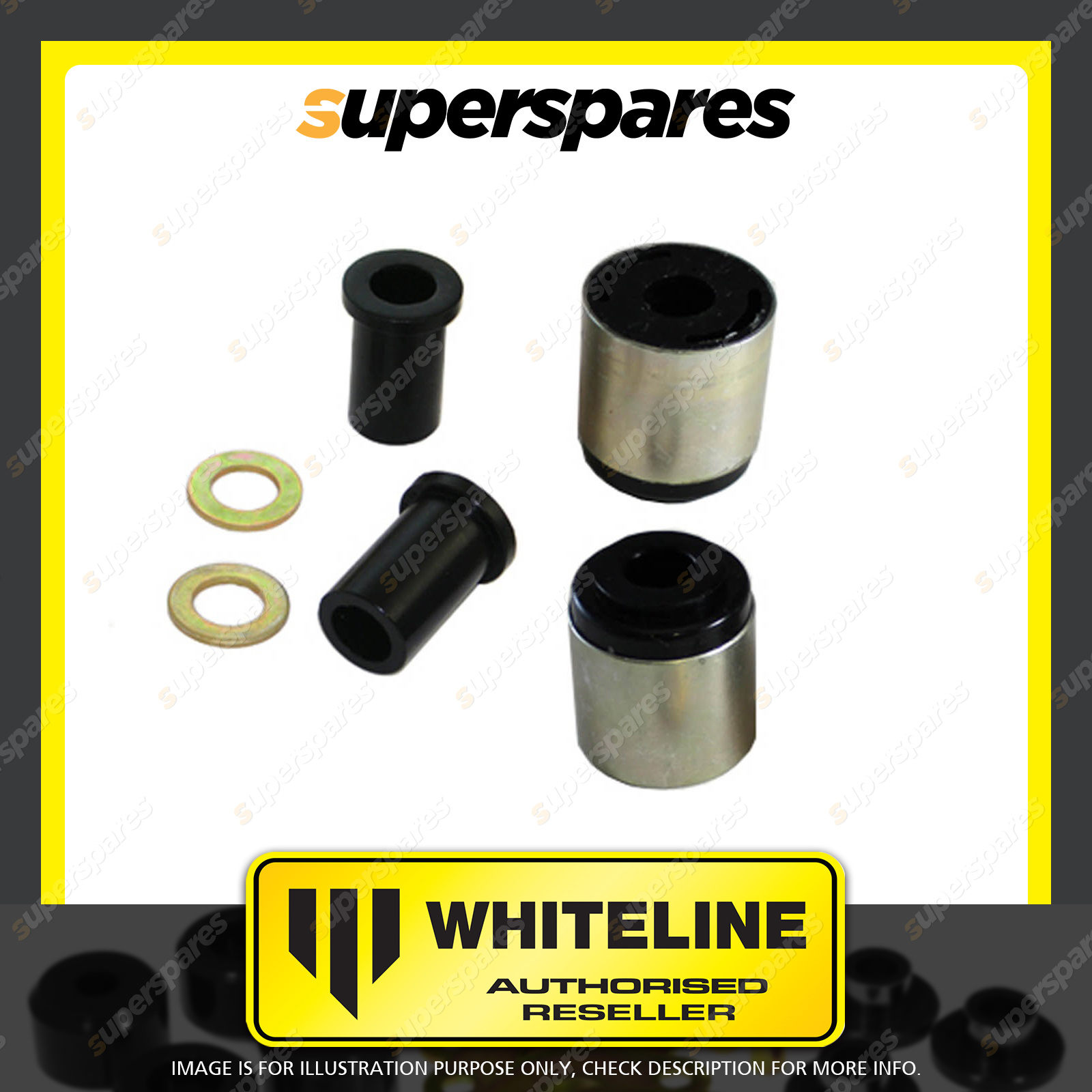 | Contents : Whiteline Front Control arm - lower inner Rear bushing Warranty : 3 Year / 60,000Kms Kit Contents : 2 Shell Bushings, 2 Bushings, 2 Washers, Grease |