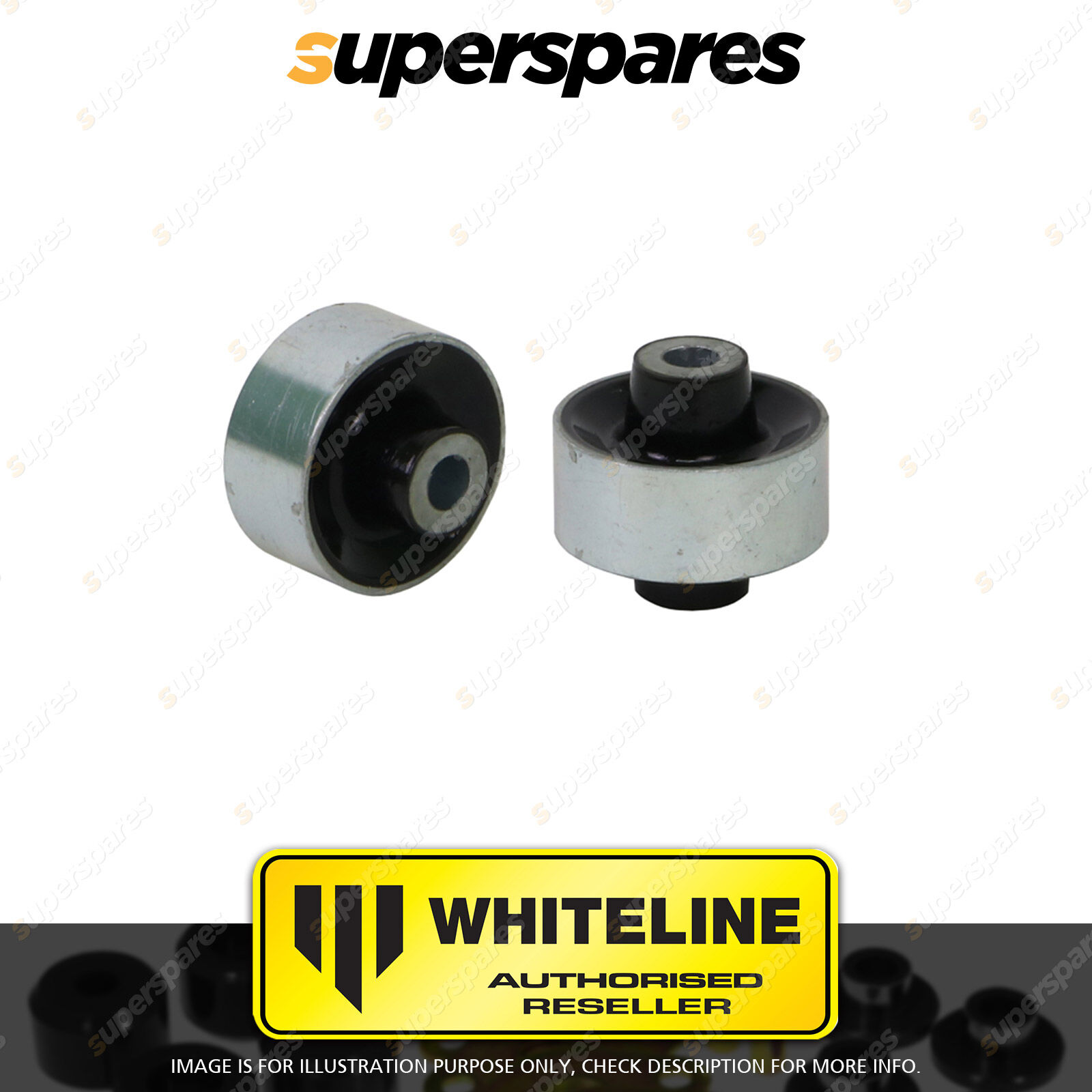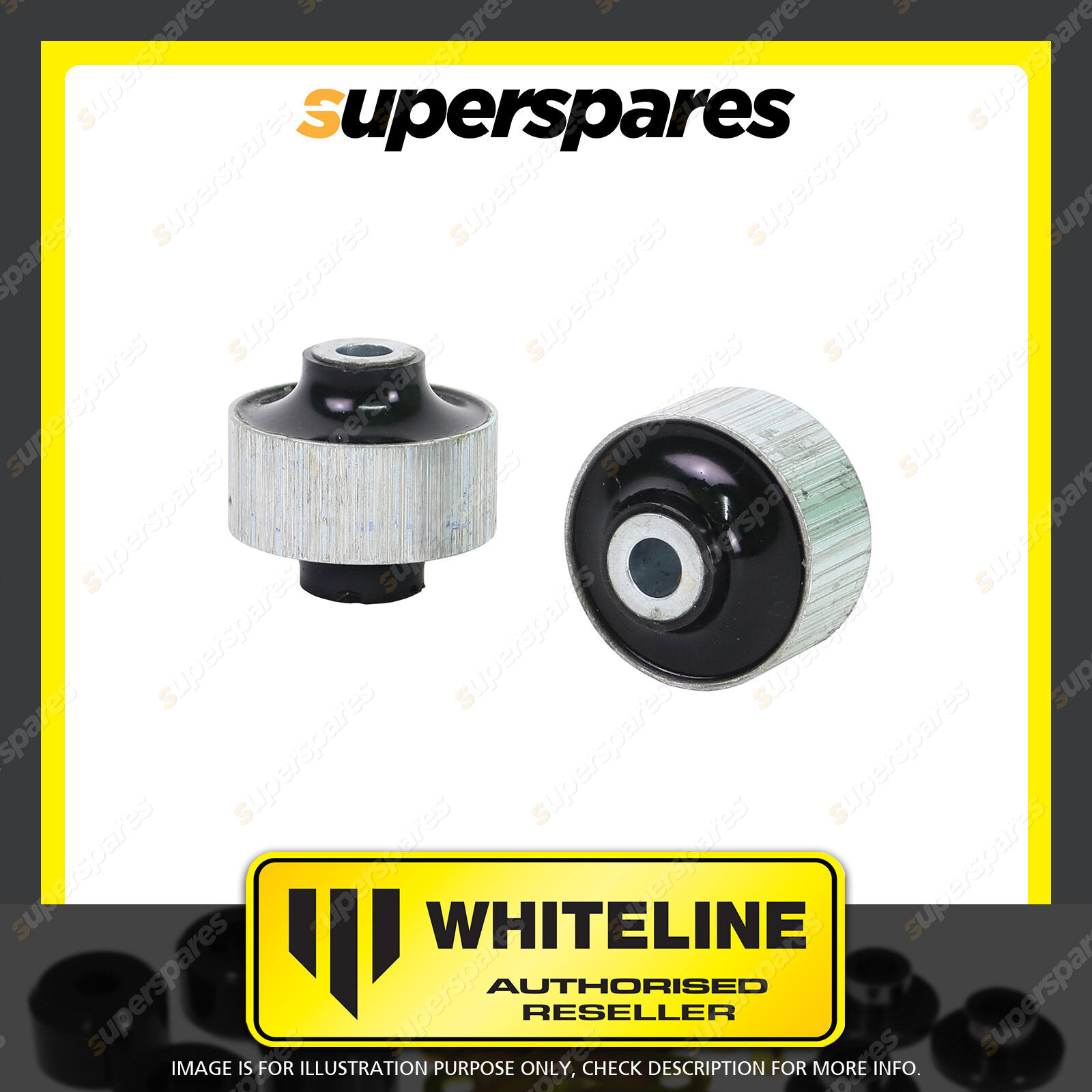 | Contents : Whiteline Front Control Arm - Lower Inner Rear Bushing Warranty : 3 Year / 60,000Kms Kit Contents : 2 Shell Bushings |