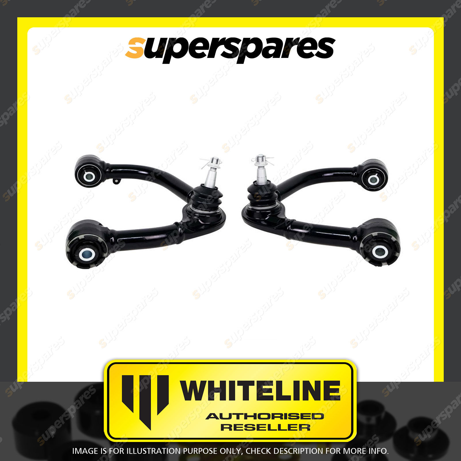 | Contents : Whiteline Front Control Arm Upper - Arm Assembly Warranty : 3 Year / 60,000Kms Kit Contents : 2 Arms |