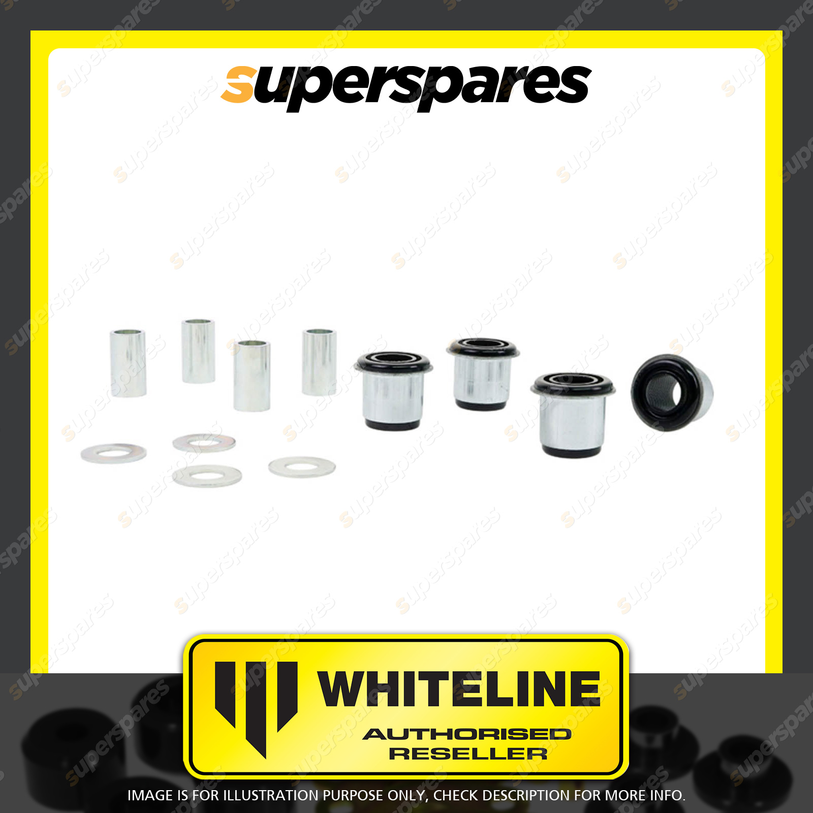 | Contents : Whiteline Front Control arm - upper bushing Warranty : 3 Year / 60,000Kms Kit Contents : 4 Shell Bushings, 4 Tubes, Install Guide, Grease |