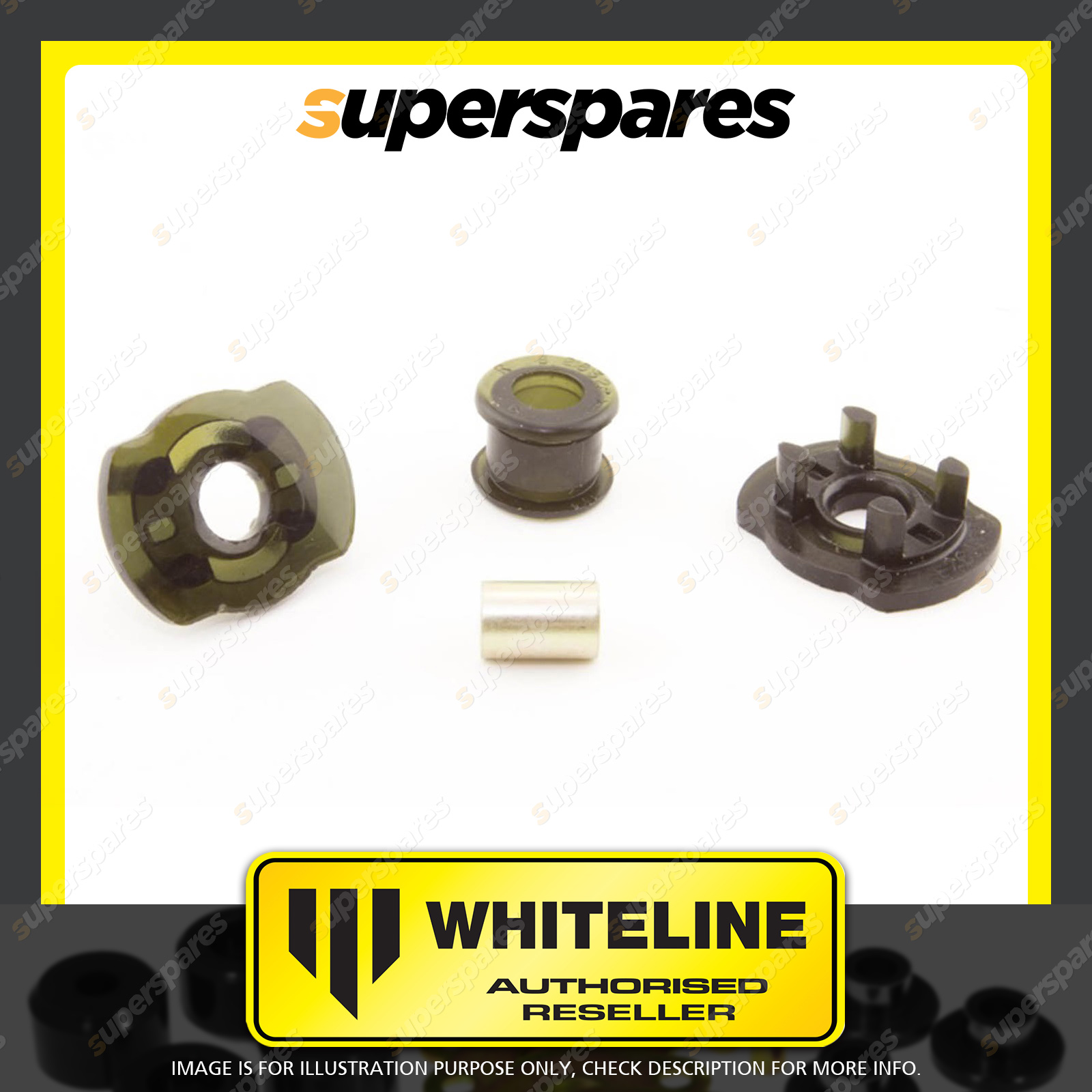 | Contents : Whiteline Front Engine - pitch mount bushing Warranty : 3 Year / 60,000Kms Kit Contents : 3 Insert Bushings, 1 Tube |