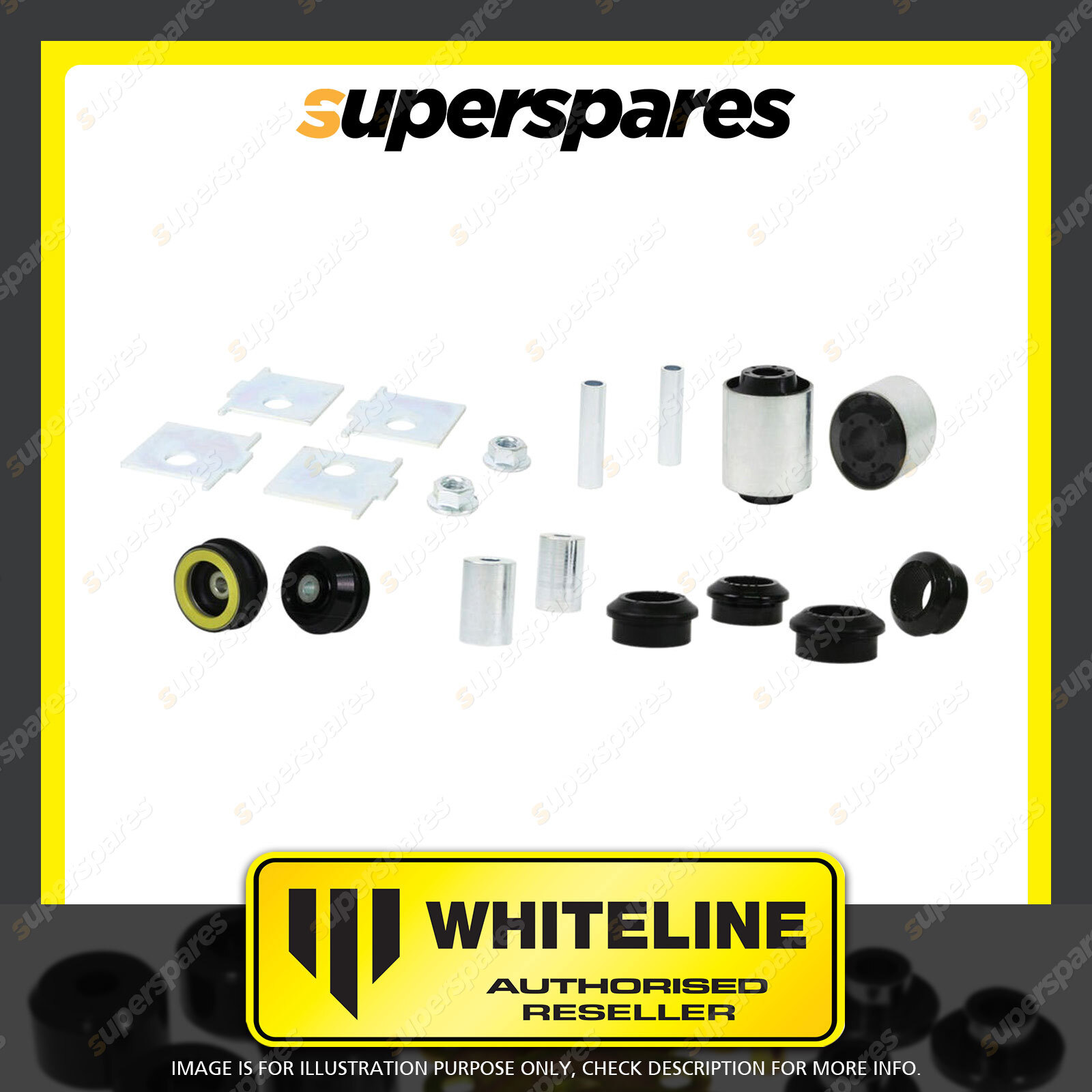 Whiteline Essential Vehicle Kit By matching key bushing, alignment and geometry products into one solution, Whiteline Essential Kits provide bang for your buck handling upgrades that simply Activate More Grip. Essentials include front camber bolts, front anti dive/ caster kit, steering precision rack and control arm bushings that deliver go kart like steering and next level grip to your vehicle. | |