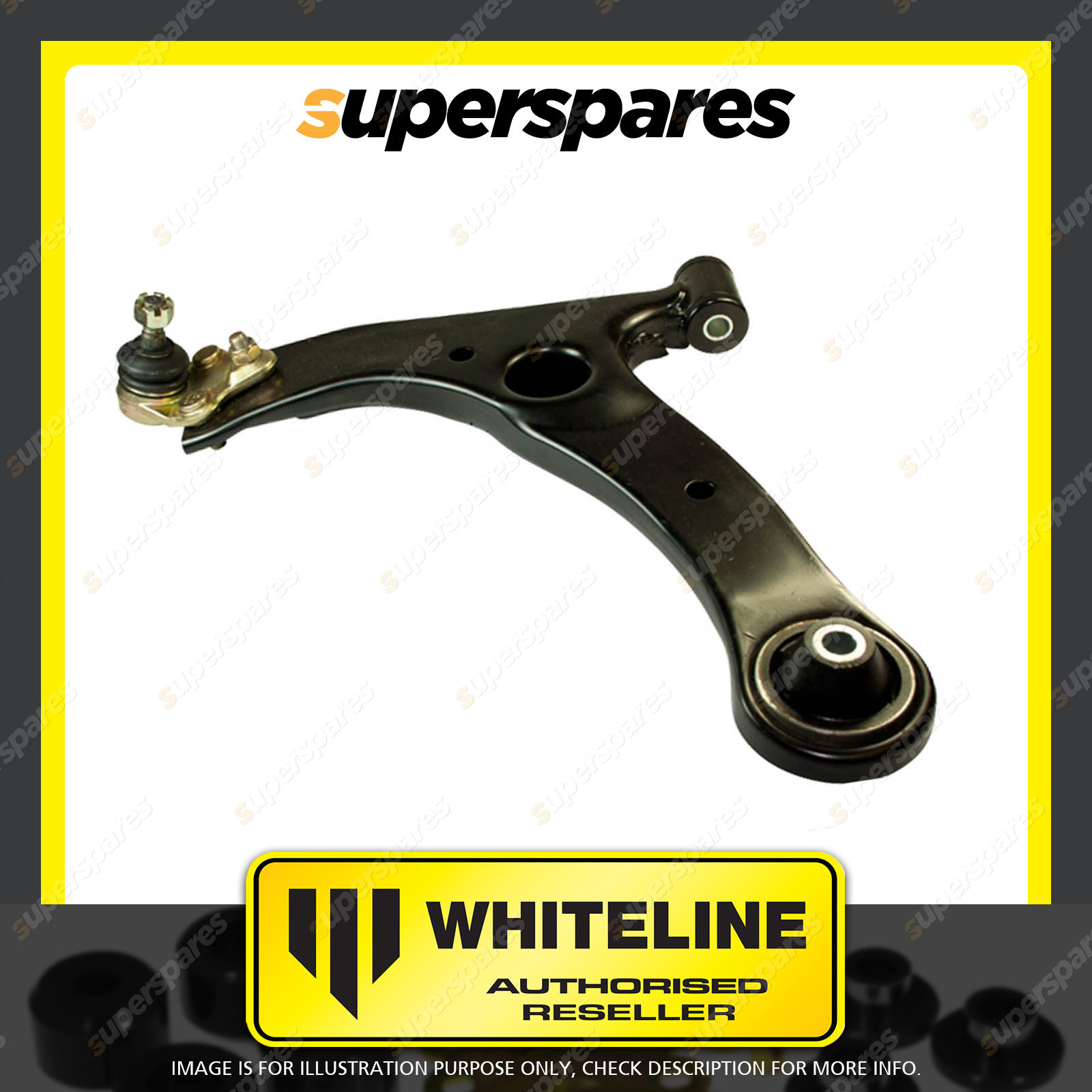 | Contents : Whiteline Front lower Control arm Warranty : 3 Year / 60,000Kms Kit Contents : 1 Arm, Grease |