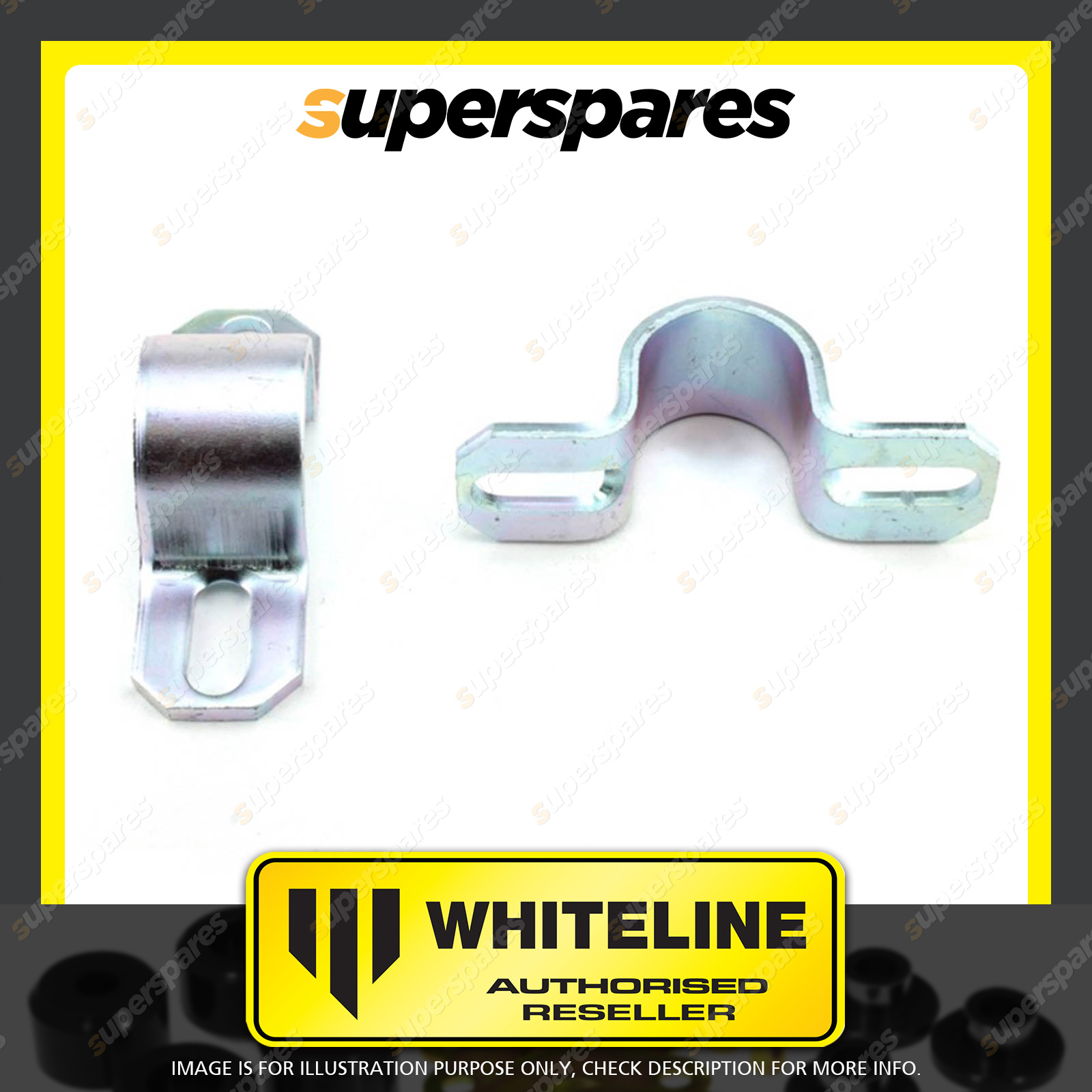 | Contents : Whiteline Front Sway bar - mount saddle Warranty : 3 Year / 60,000Kms Kit Contents : 2 Saddles |