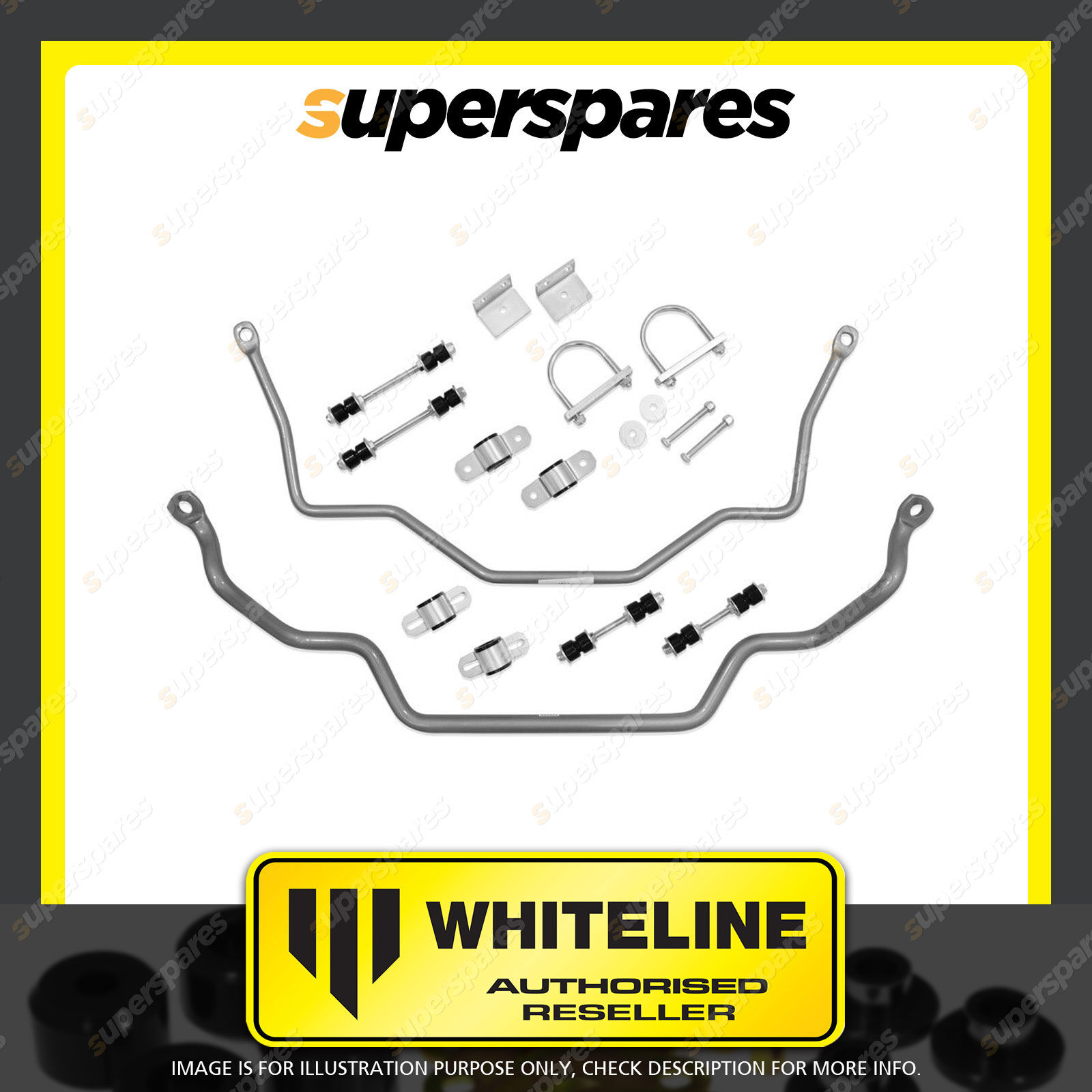 | Contents : Whiteline Front and Rear Sway Bar - Vehicle Kit Warranty : 3 Year / 60,000Kms Kit Contents : 2 Sway Bars, 4 Links, 20 Bushings,Hardware |
