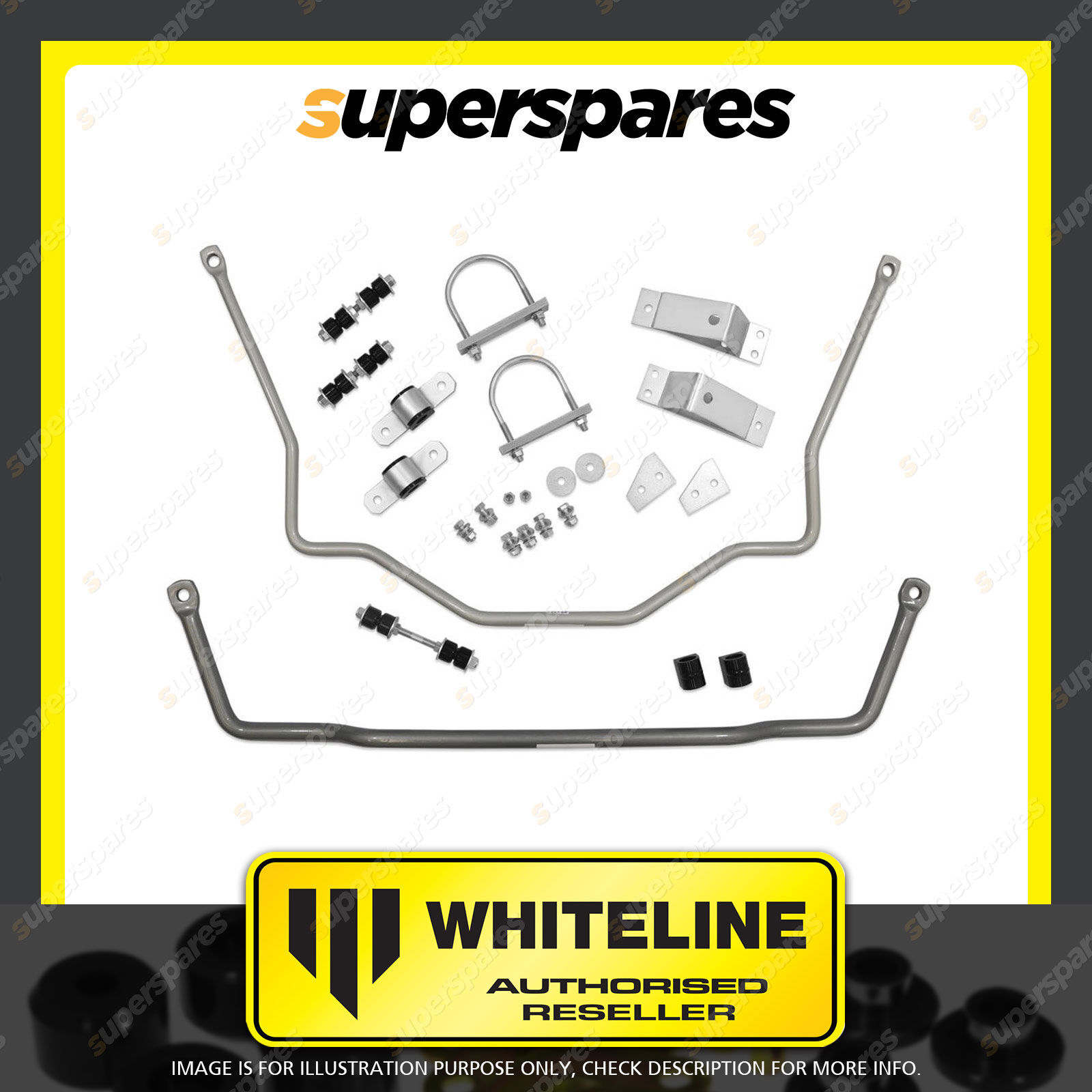 | Contents : Whiteline Front and Rear Sway Bar - Vehicle Kit Warranty : 3 Year / 60,000Kms Kit Contents : 2 Sway Bars, 4 Links, 4 Bushings, Hardware |