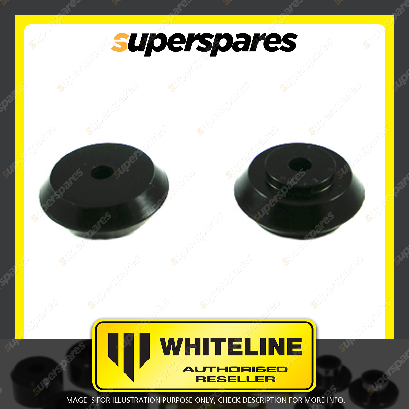 | Contents : Whiteline Front Shock absorber - upper bushing Warranty : 3 Year / 60,000Kms Kit Contents : 2 Bushings, Grease |