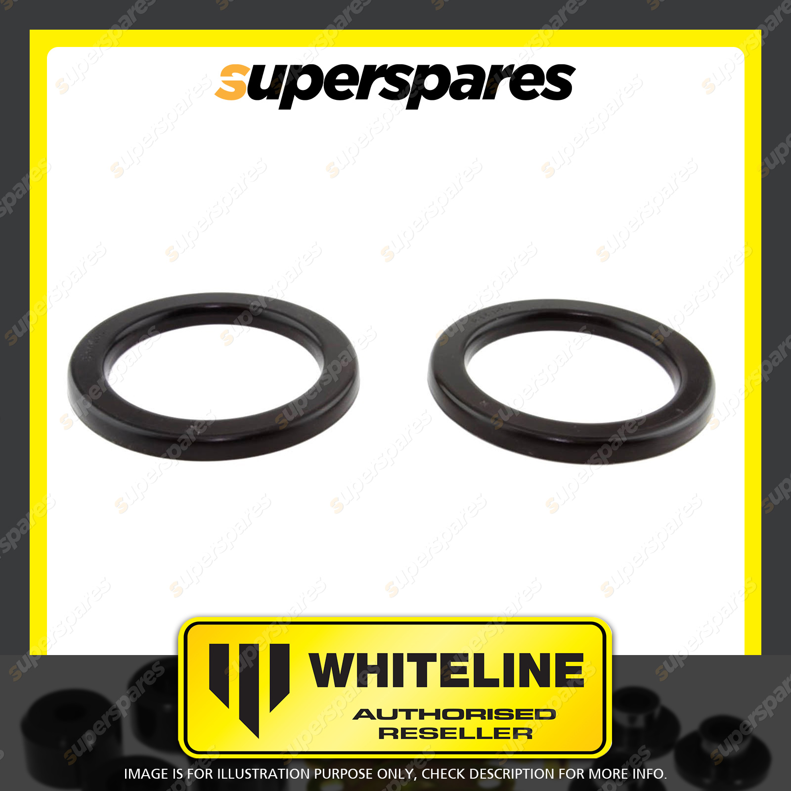 | Contents : Whiteline Front Spring - pad upper bushing Warranty : 3 Year / 60,000Kms Kit Contents : 2 Bushings |
