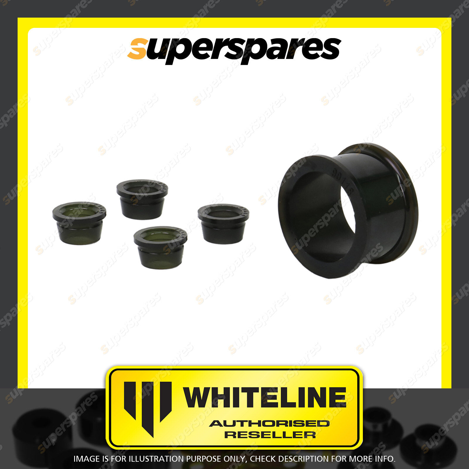 | Contents : Whiteline Front Steering - Rack and Pinion Mount Bushing Warranty : 3 Year / 60,000Kms Kit Contents : 5 Bushings |