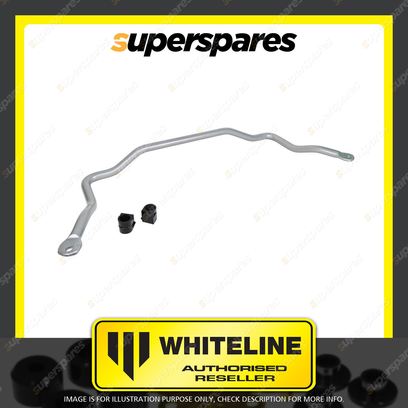 | Contents : Whiteline Front Sway Bar - 30mm Non Adjustable Warranty : Lifetime Kit Contents : 1 Sway Bar, 2 Bushings |