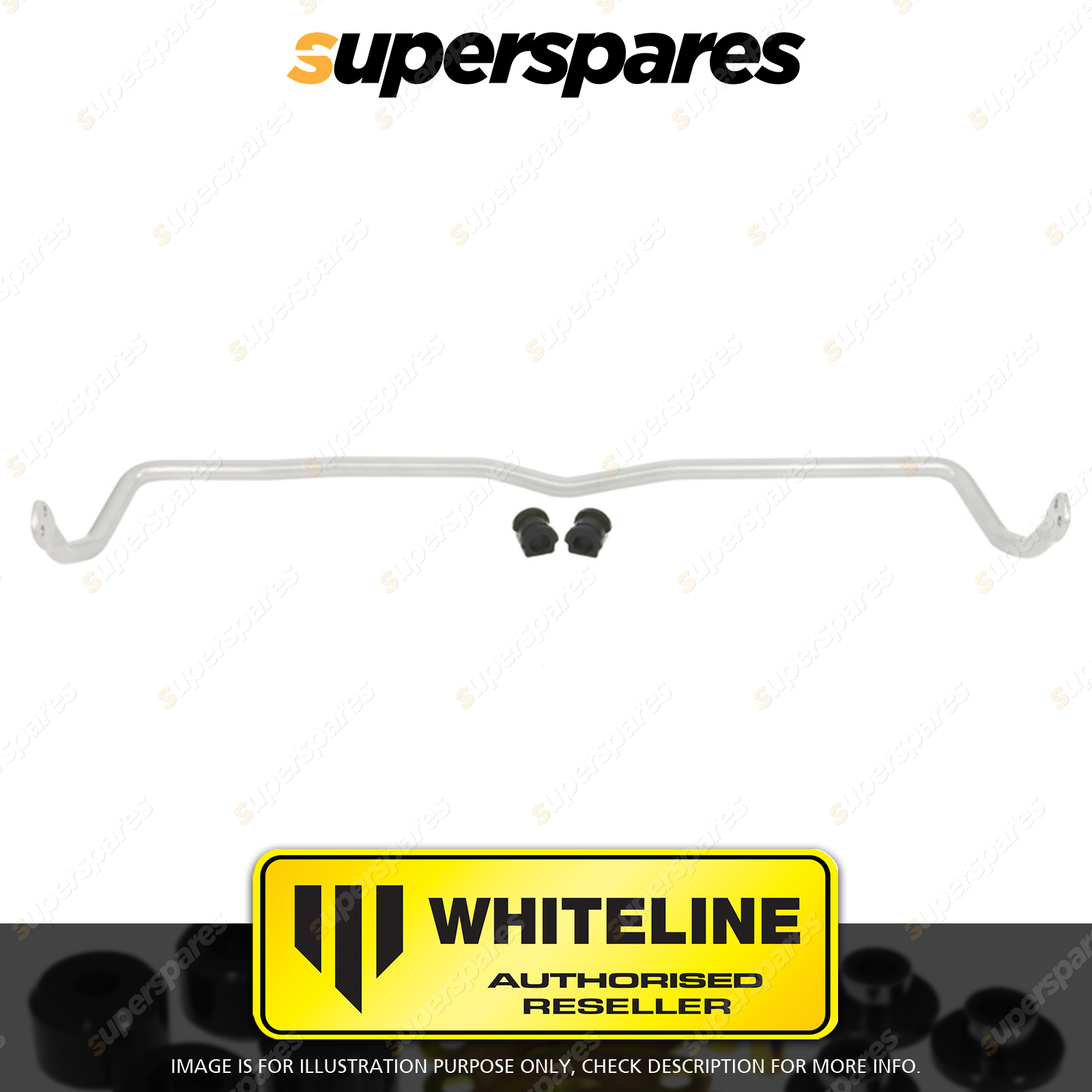 | Contents : Whiteline Front Sway bar Warranty : 3 Year / 60,000Kms Kit Contents : 1 Sway Bar, 2 Bushings, 2 Lateral Locks, Install Guide, Grease | Kit Specifications : Diameter(mm) : 22mm |