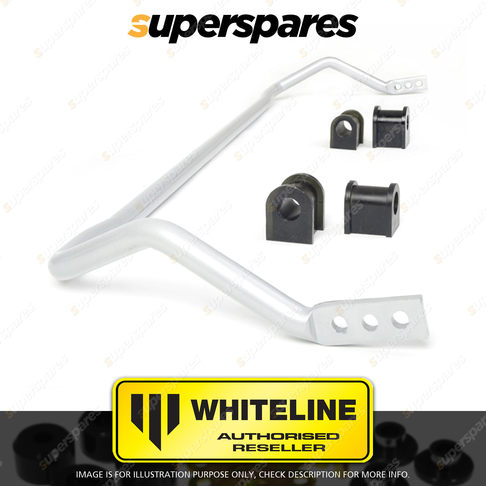 ![]() | Allow their stiffness to be altered by increasing or reducing the length of the lever arms. Whiteline Sway bars are manufactured using the finest grade Australian spring steel. They are powder coated and supplied with high performance synthetic elastomer mounting bushes in a DIY kit form, ready to simply bolt on. Whiteline adjustable sway bars offer from 2 up to 4 points of adjustment allowing in some cases 10 distinct stiffness settings for precise handling bias adjustment. |