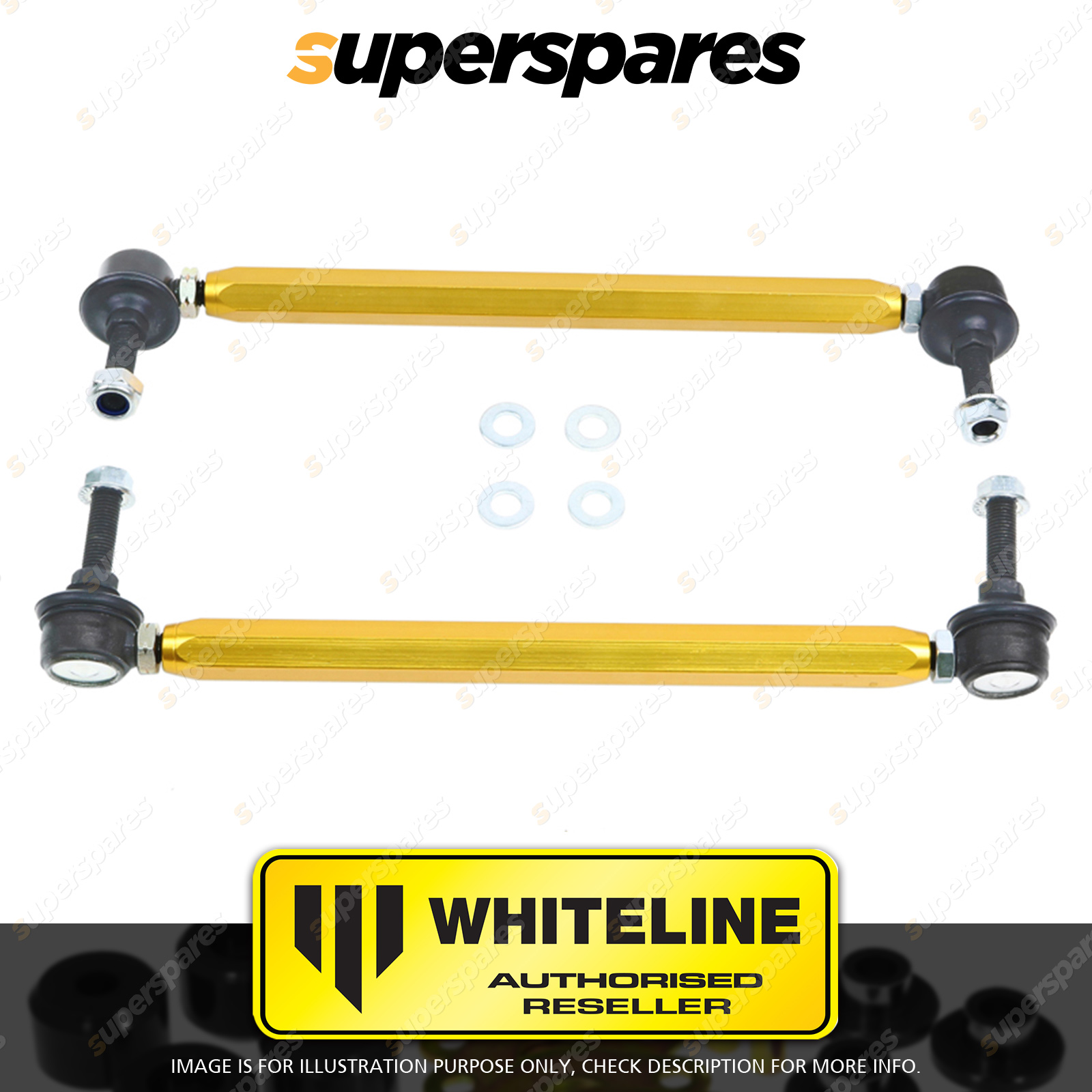 | Contents : Whiteline Front Sway bar - link Warranty : 3 Year / 60,000Kms Kit Contents : 2 Links, Install Guide | Kit Specifications : Link Type : Ball |