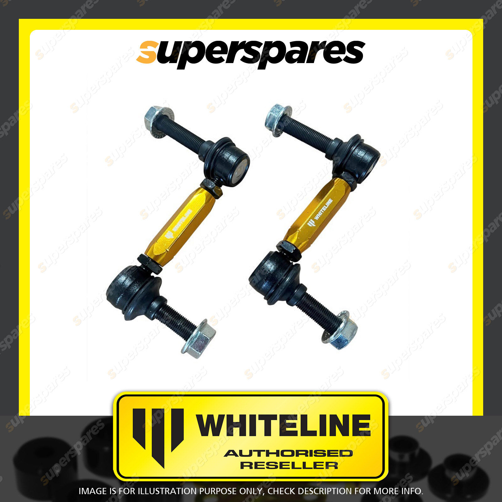 | Contents : Whiteline Front Sway Bar Link - Assembly Warranty : 3 Year / 60,000Kms Kit Contents : 2 Links |