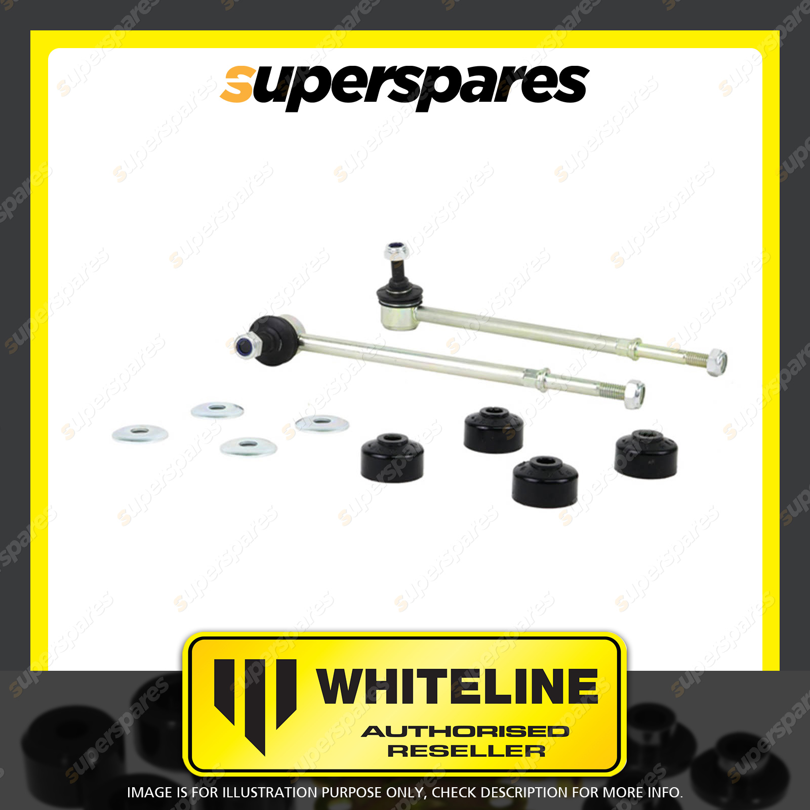 | Contents : Whiteline Front Sway bar - link Warranty : 3 Year / 60,000Kms Kit Contents : 2 Links, 4 Bushings, 4 Washers, 2 Nuts, Install Guide | Kit Specifications : Link Type : Ball/ Bushing |