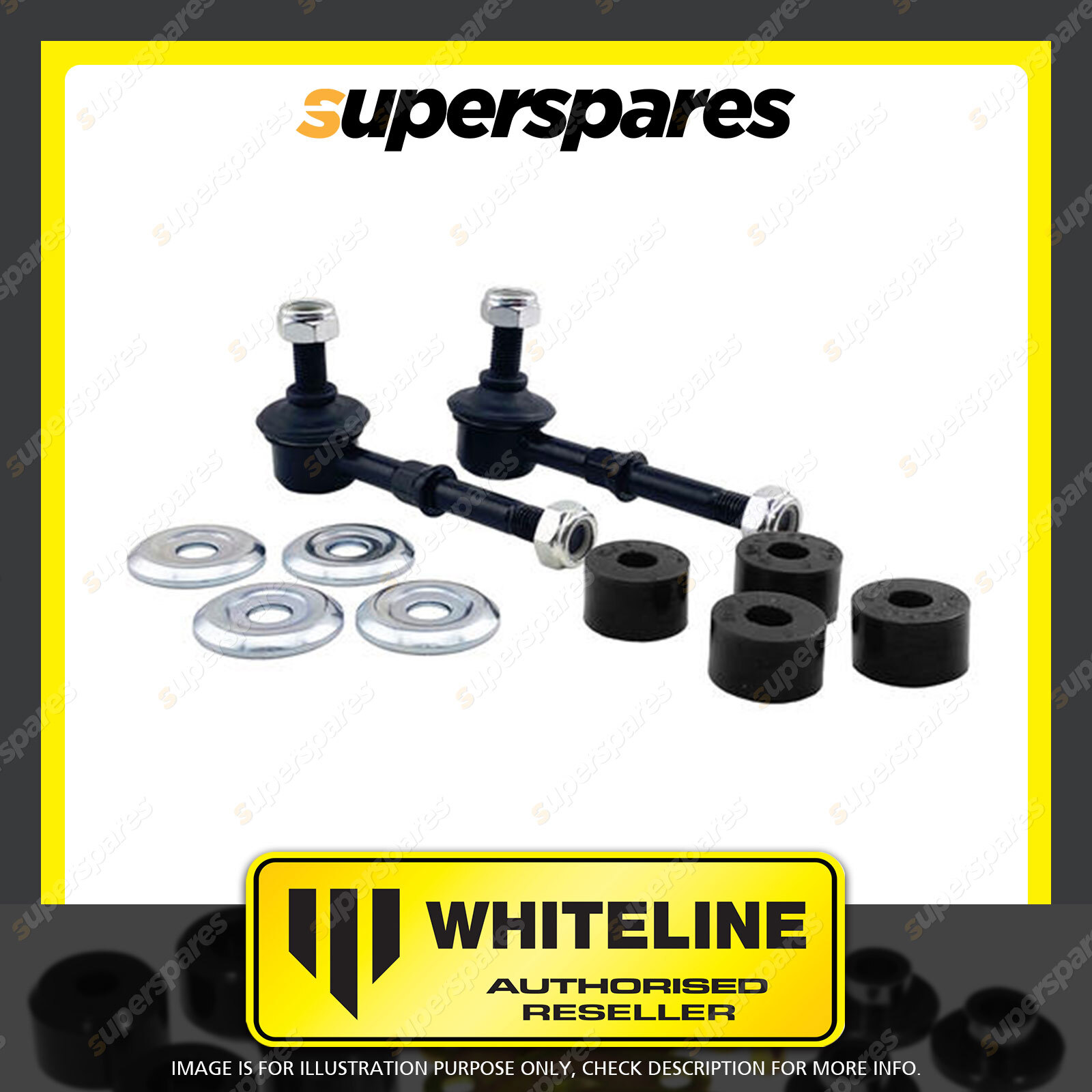 Whiteline adjustable sway bar link Performance sway bar links utilising a heavy duty steel ball joint ends that adjust & rotate to any angular combination. Eliminate sway bar preload via the light weight aluminium bodies provide 25mm centre to centre length adjustment. Whiteline Lateral Locks The locks are easily installed on car. They are mounted directly next to the sway bar mounting points and prevent shifting or sideways movement of the sway bar under lateral (cornering loads). This results in improved sway bar effectiveness whilst preventing fouling of the sway bar on nearby chassis and steering components |
