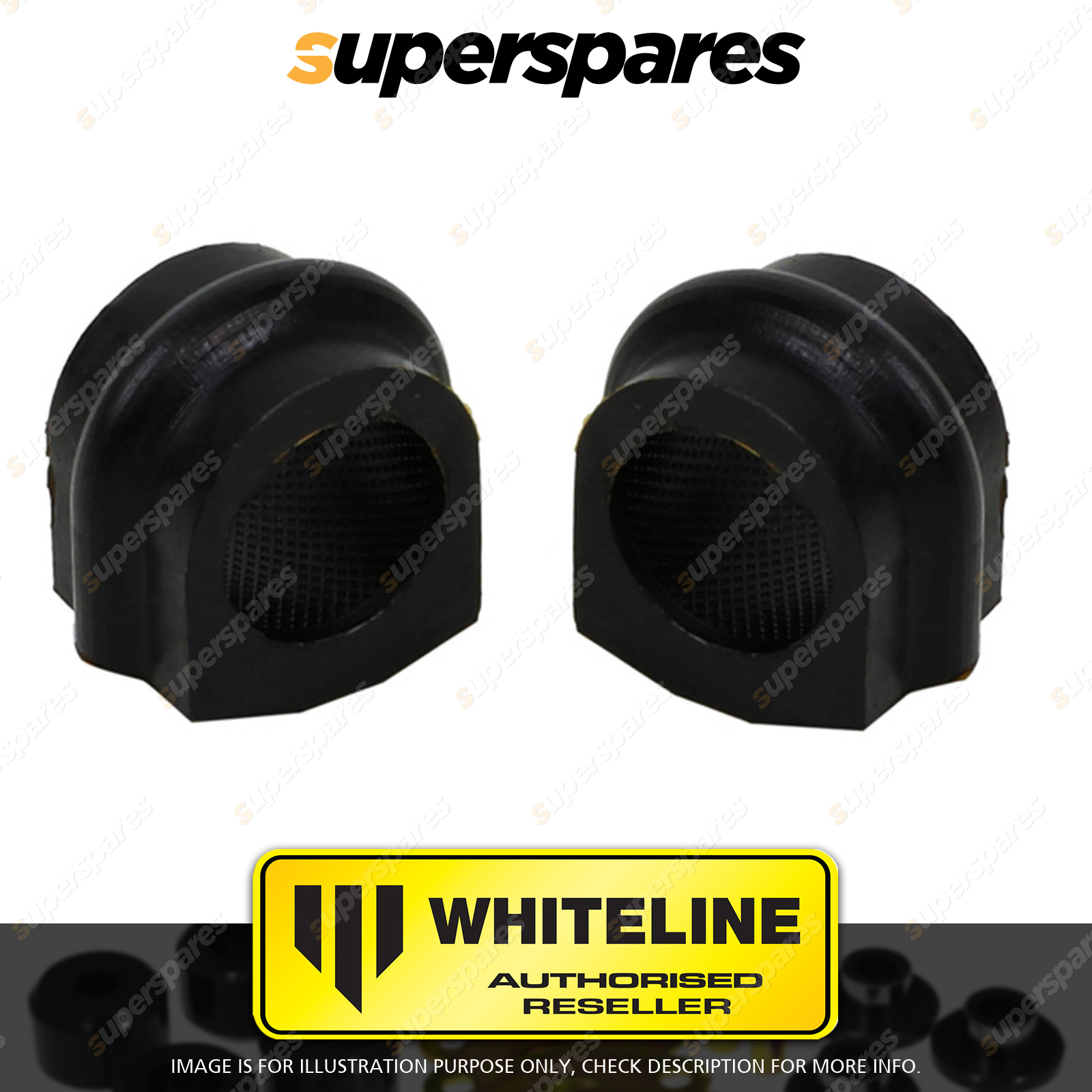 | Contents : Whiteline Front Sway bar - mount bushing Warranty : 3 Year / 60,000Kms Kit Contents : 2 Bushings, Grease |
