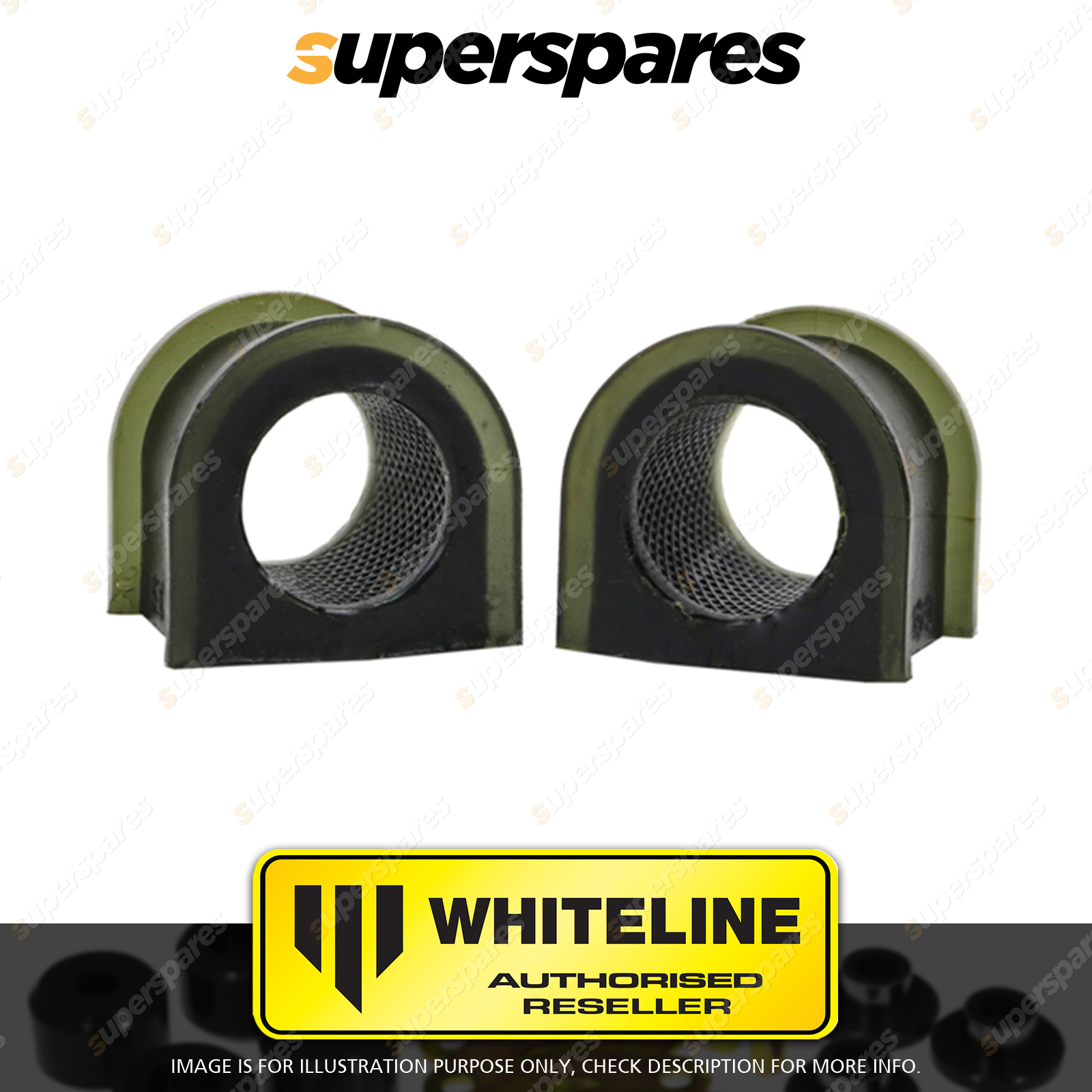 | Contents : Whiteline Front Sway bar - mount bushing Warranty : 3 Year / 60,000Kms Kit Contents : 2 Bushings, Grease |