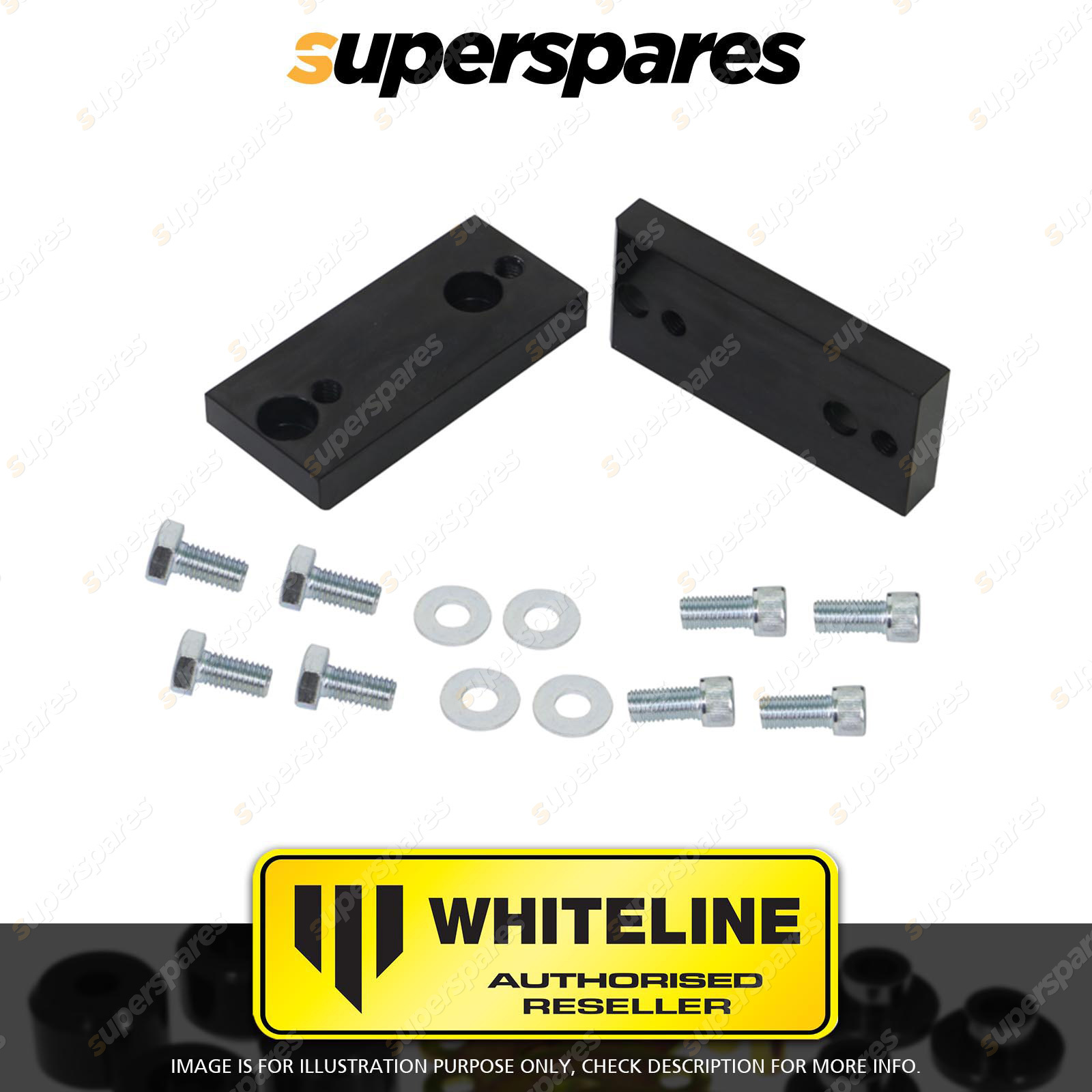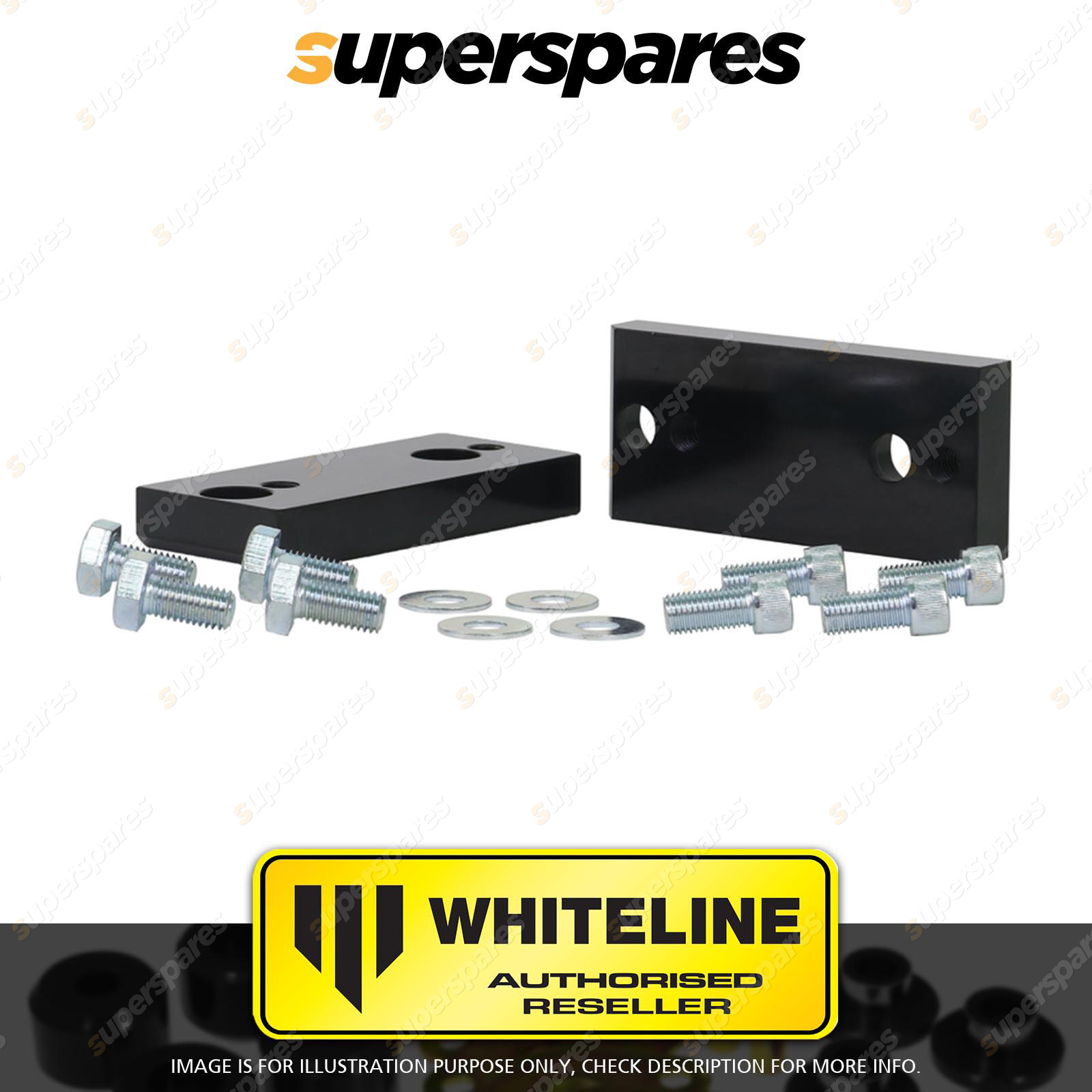 Contents : Whiteline Sway Bar - Mount Spacer Kit Position : Front Warranty : Lifetime Kit Contents : 2 Plates, 8 Bolts, 4 Washers |