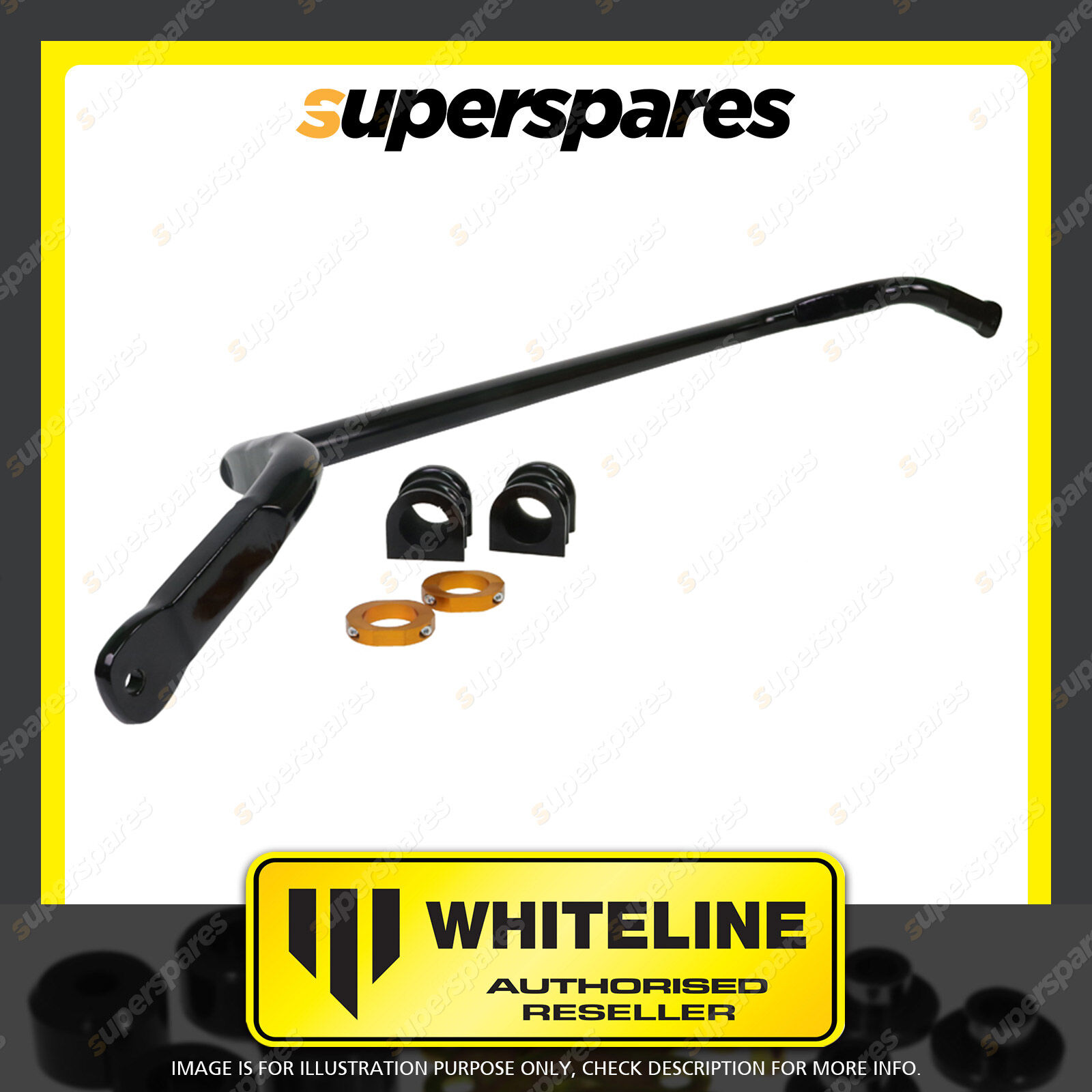 | Contents : Whiteline Front Sway Bar Stabiliser Kit Warranty : 3 Year / 60,000Kms Kit Contents : 1 Sway Bar, 2 Bushings, 2 Lateral Locks, Install Guide, Grease |