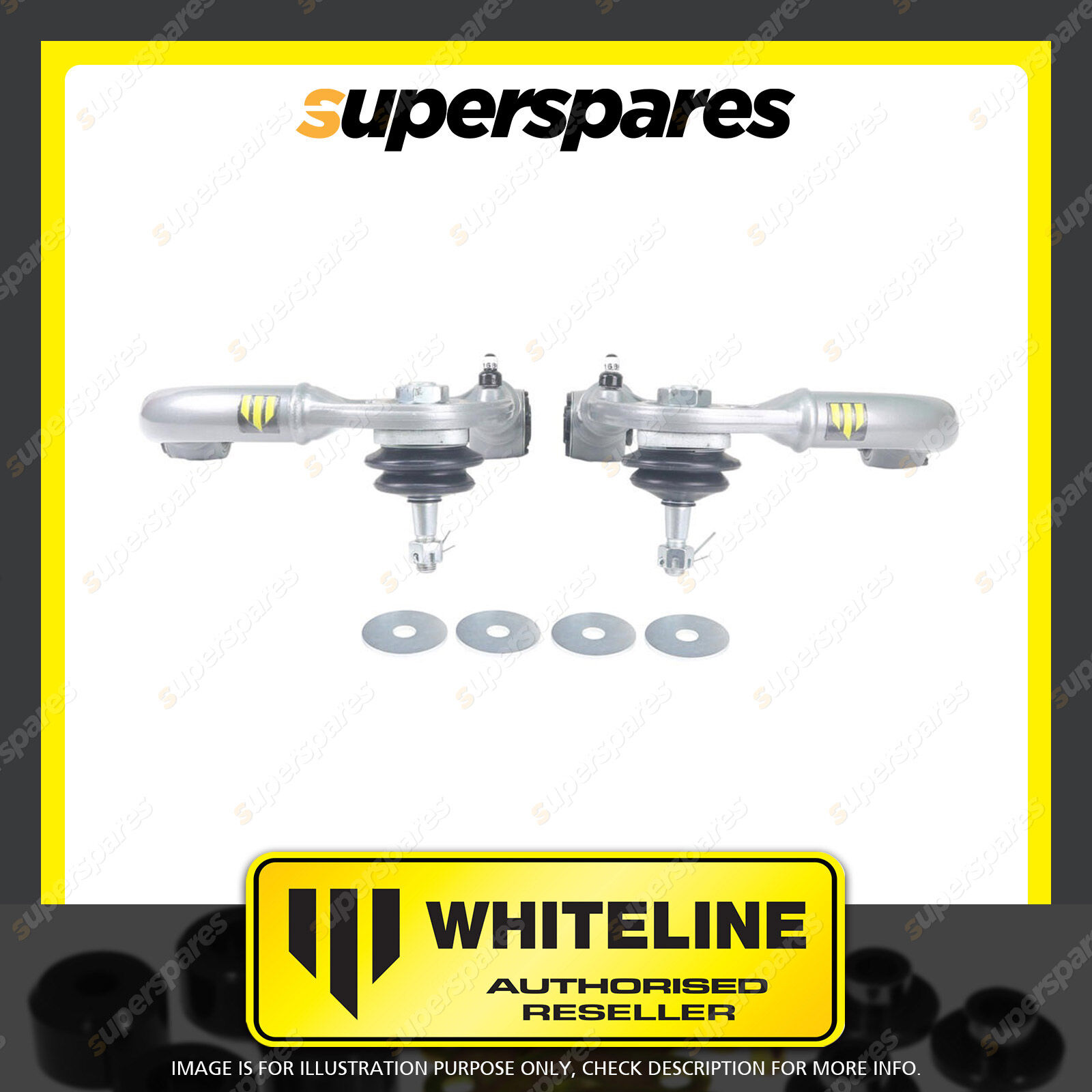 | Contents : Whiteline Adjustable Front Upper Control Arms Warranty : 3 Year / 60,000Kms Kit Contents : 2 Arms |