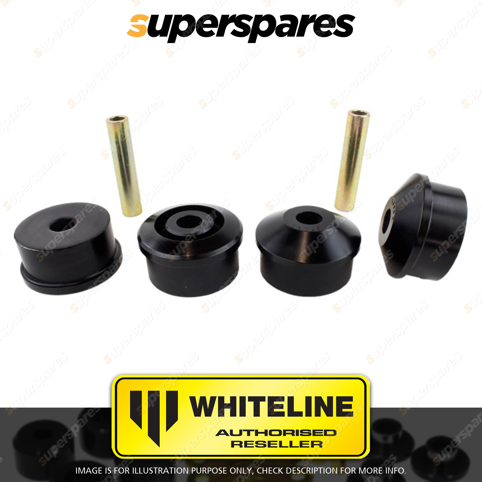 | Contents : Whiteline Rear Beam axle - Front bushing Warranty : 3 Year / 60,000Kms Kit Contents : 4 Bushings, 2 Tubes, Install Guide, Grease |