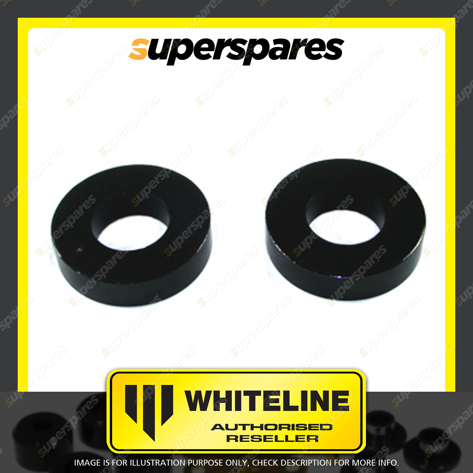 | Contents : Whiteline Rear Beam axle - Front bushing Warranty : 3 Year / 60,000Kms Kit Contents : 2 Insert Bushings, Install Guide, Grease |