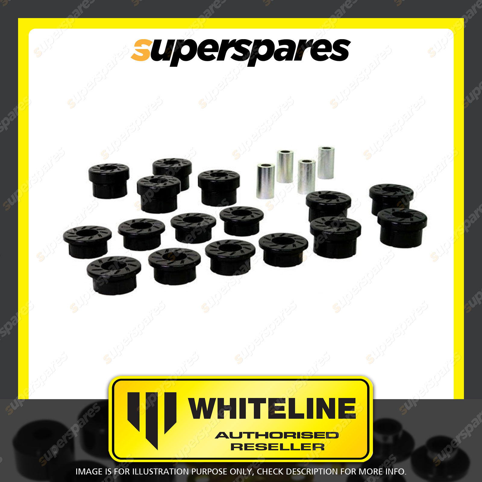 | Contents : Whiteline Rear Control Arm Lower And Upper - Bushing Kit Warranty : Lifetime Kit Contents : 16 Bushings, 8 Tubes |