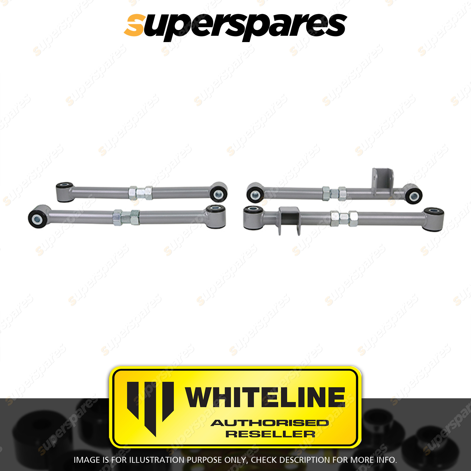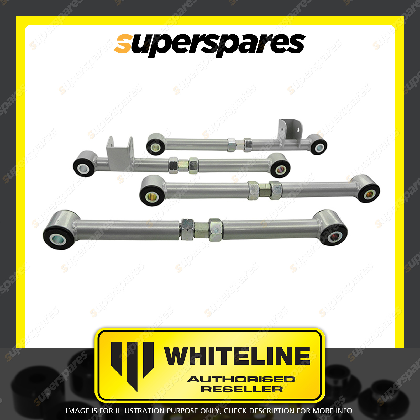 | Contents : Whiteline Rear Control arm - lower Front and Rear arm Warranty : 3 Year / 60,000Kms Kit Contents : 4 Arms, Install Guide, Grease |
