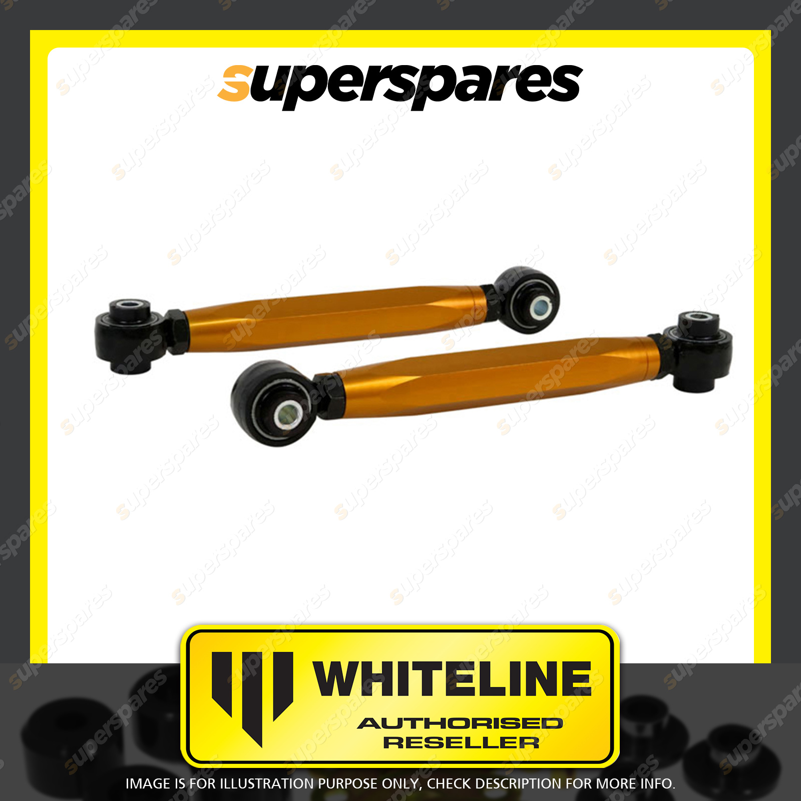 | Contents : Whiteline Rear lower front Control arm Warranty : 3 Year / 60,000Kms Kit Contents : 2 Arms, Install Guide |
