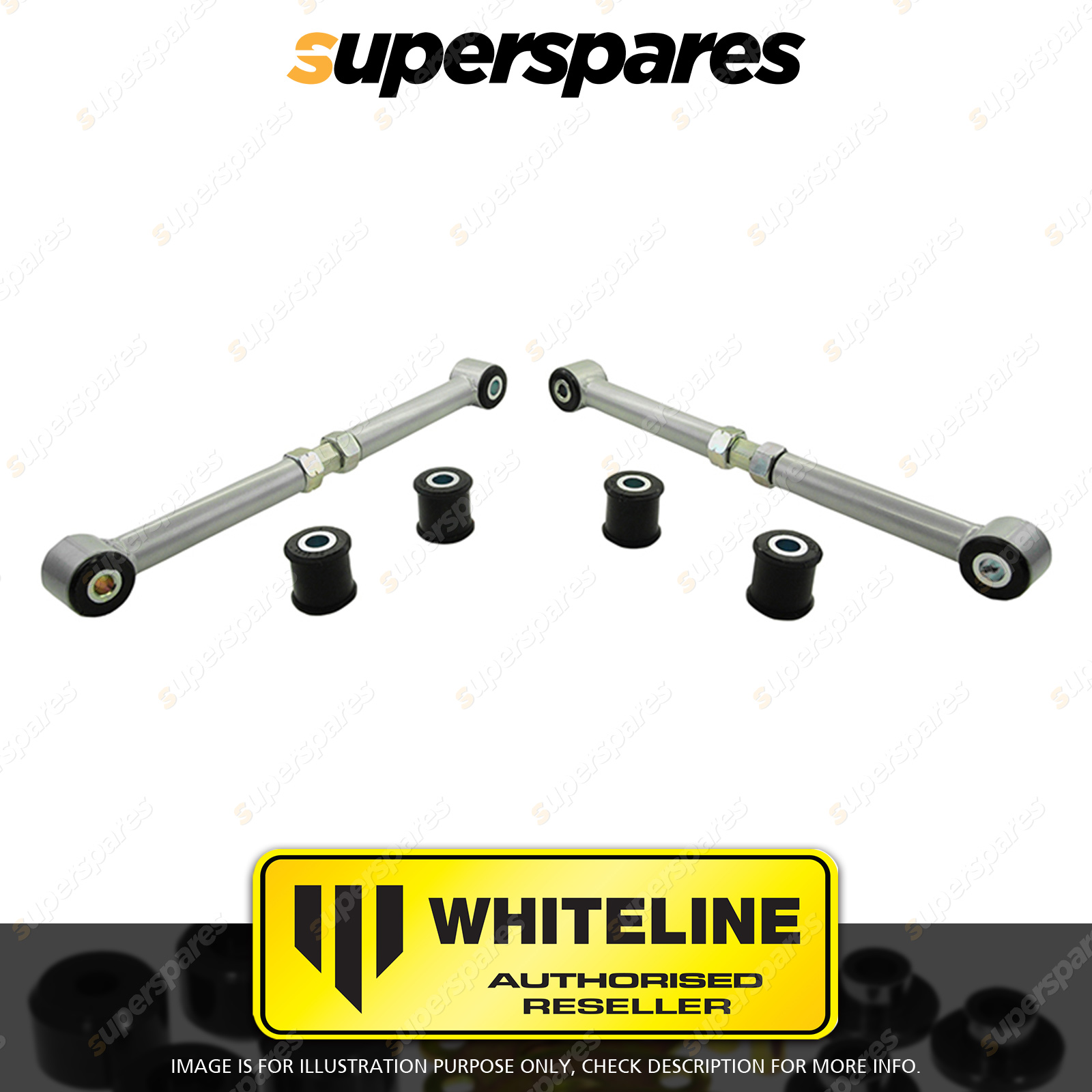 | Contents : Whiteline Rear lower front Control arm Warranty : 3 Year / 60,000Kms Kit Contents : 2 Arms, 4 Bushings, 4 Tubes, Install Guide, Grease |