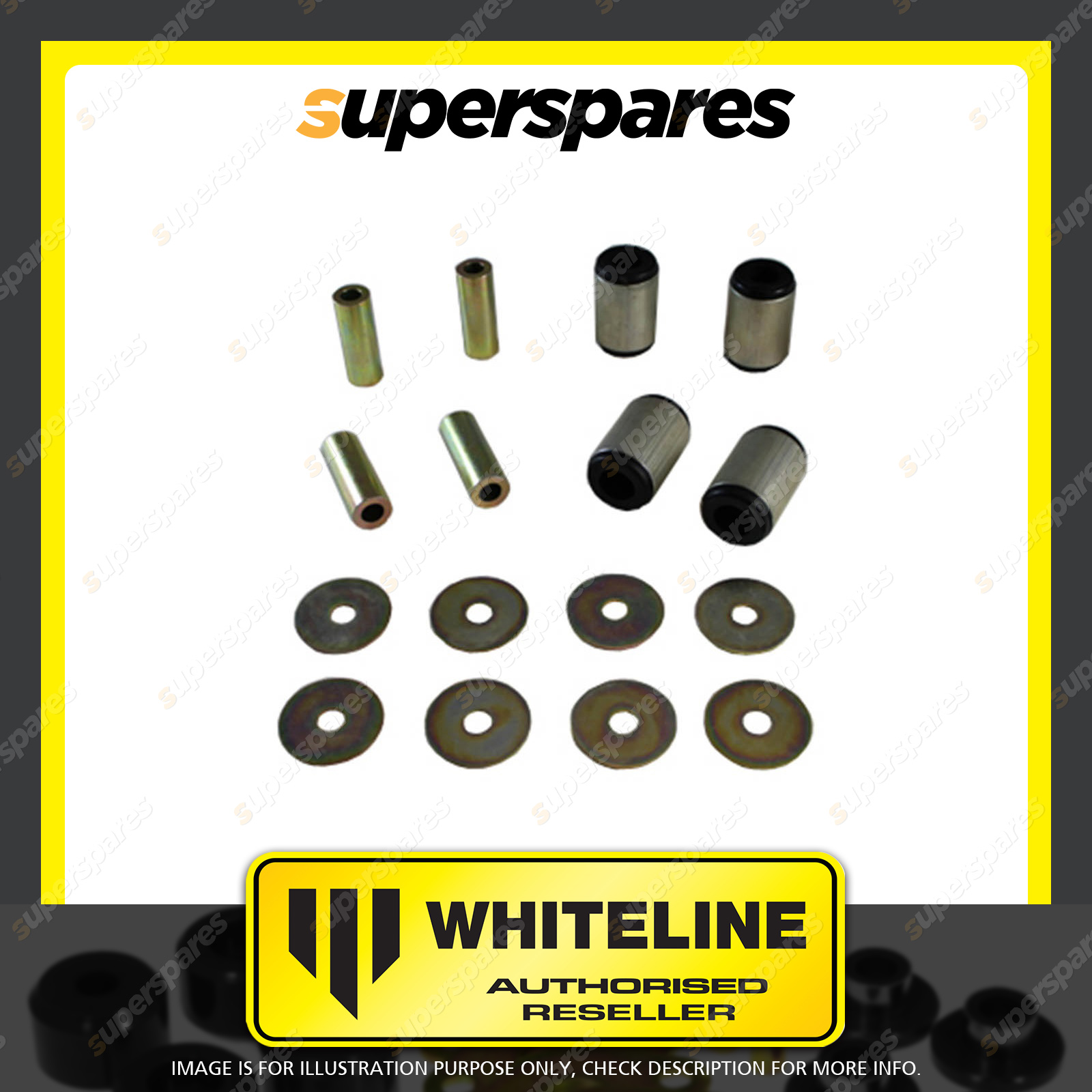 | Contents : Whiteline Rear Control arm - lower Front inner bushing Warranty : 3 Year / 60,000Kms Kit Contents : 4 Shell Bushings, 4 Tubes, 8 Washers, Install Guide, Grease |