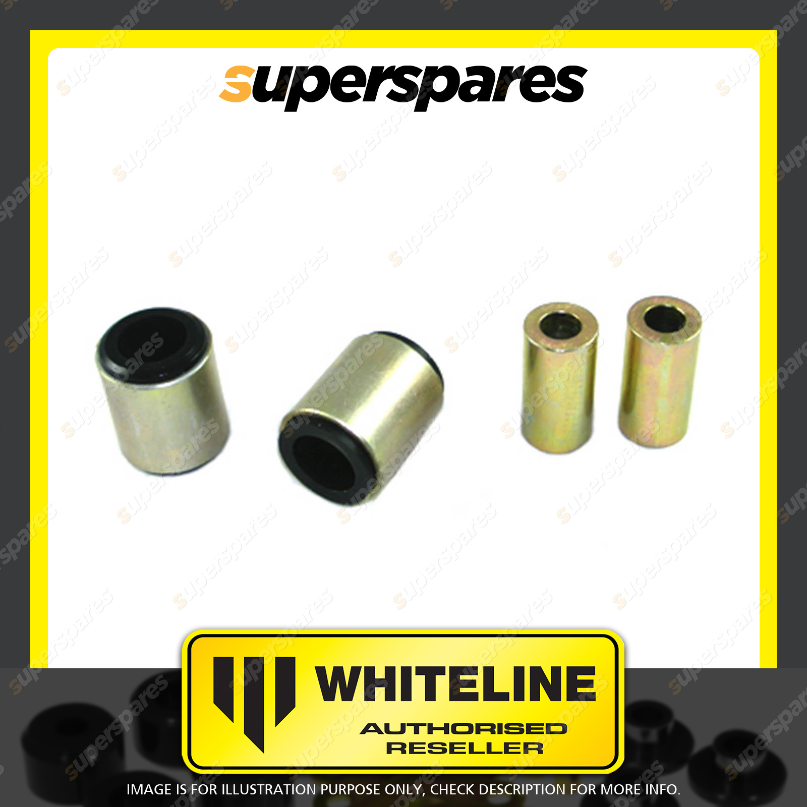 | Contents : Whiteline Rear Control arm - lower Front inner bushing Warranty : 3 Year / 60,000Kms Kit Contents : 2 Shell Bushings, 2 Tubes, Grease |