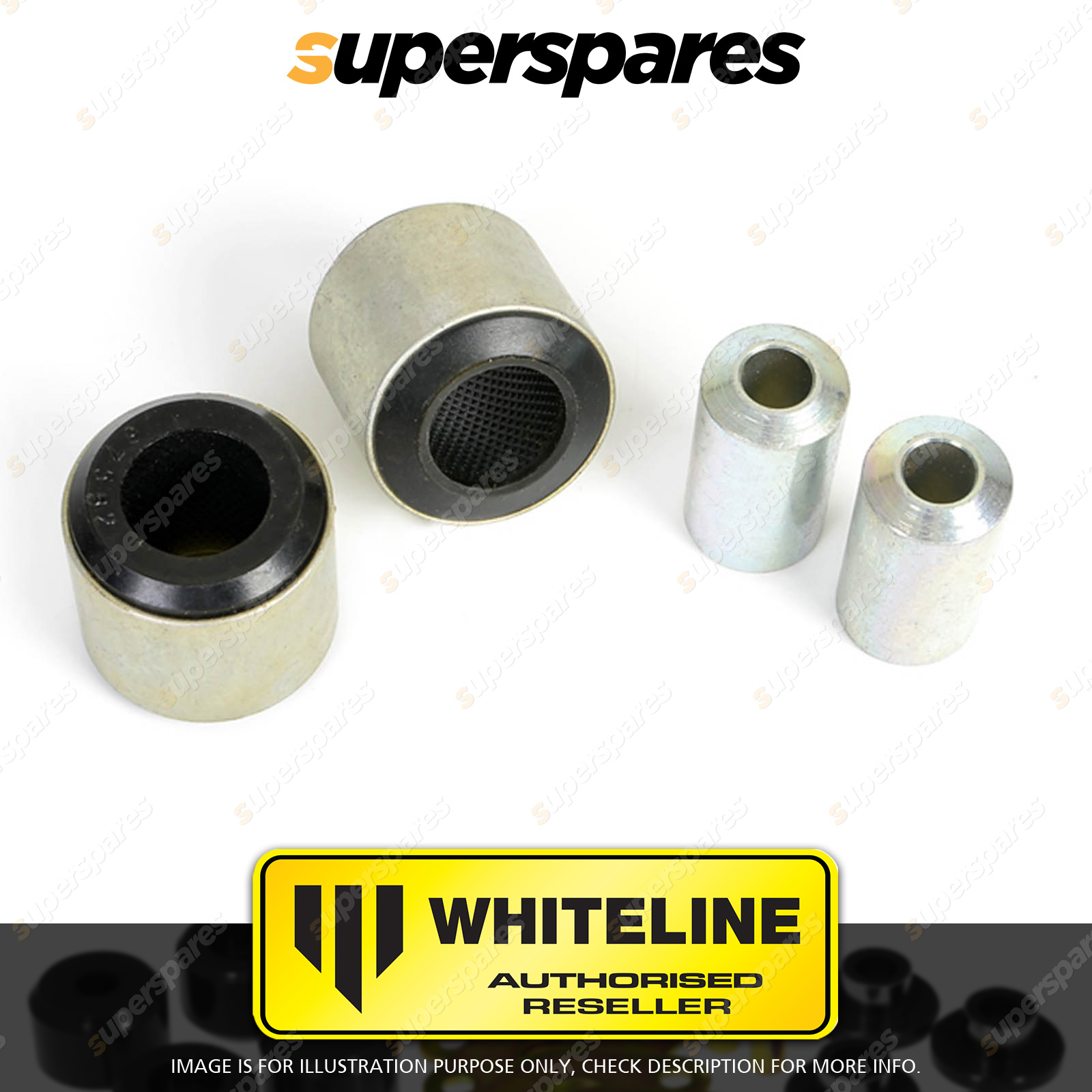 | Contents : Whiteline Rear Control arm - upper Rear outer bushing Warranty : 3 Year / 60,000Kms Kit Contents : 2 Shell Bushings, 2 Tubes, Install Guide, Grease |
