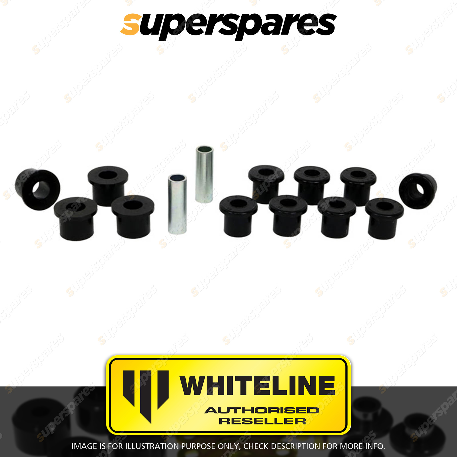 | Contents : Whiteline Rear Spring kit Warranty : 3 Year / 60,000Kms Kit Contents : 12 Bushings, 2 Tubes, Grease |