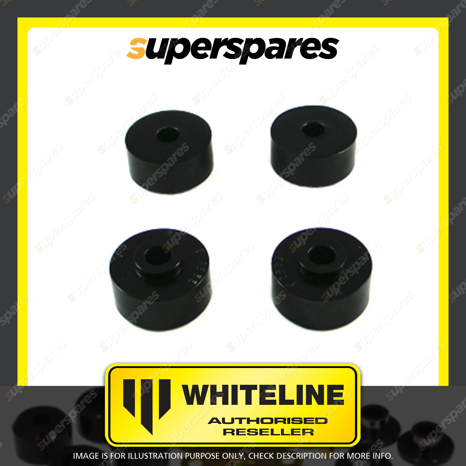 | Contents : Whiteline Rear Shock absorber - upper bushing Warranty : 3 Year / 60,000Kms Kit Contents : 4 Bushings |