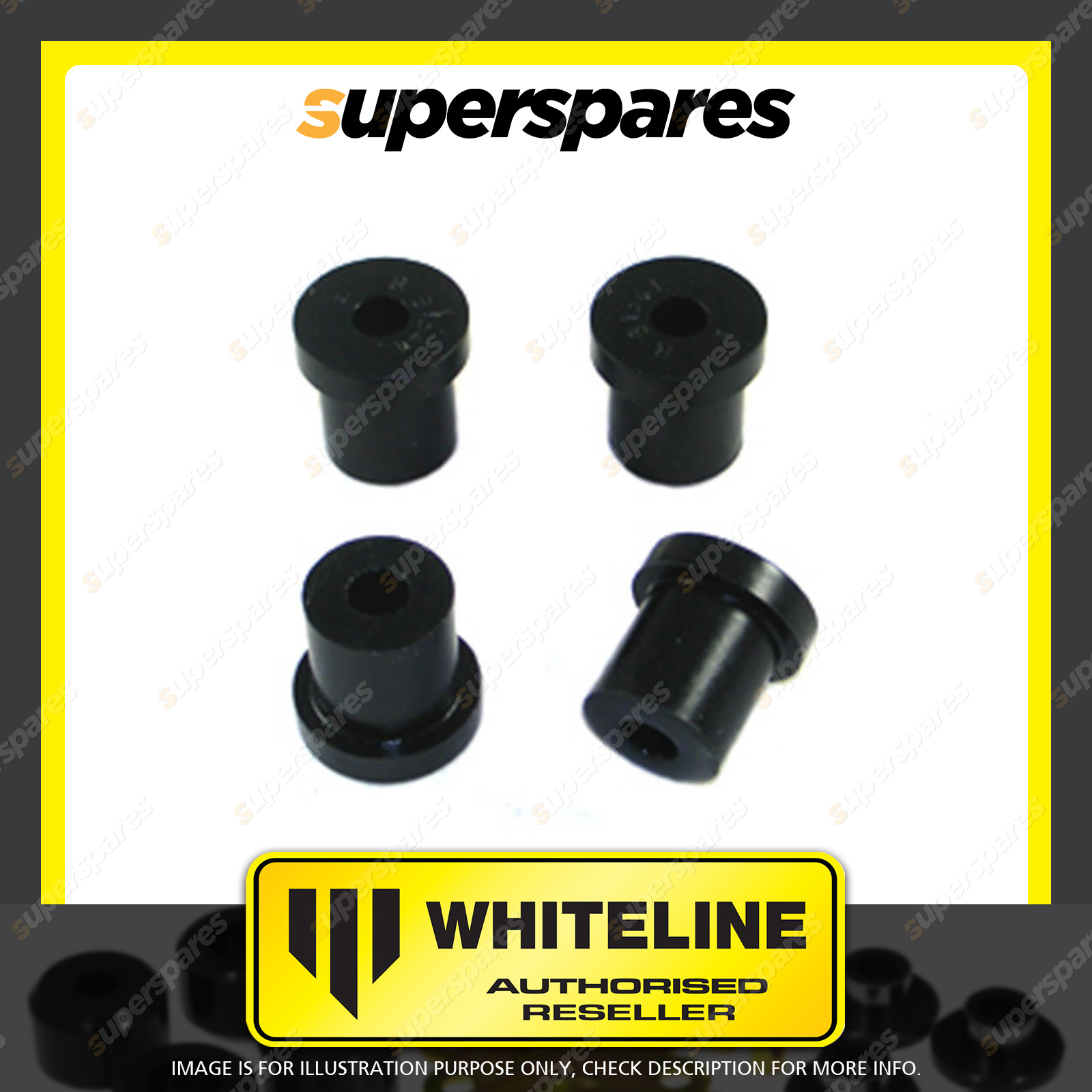 | Contents : Whiteline Rear Spring - eye Rear bushing Warranty : 3 Year / 60,000Kms Kit Contents : 4 Bushings, Grease |