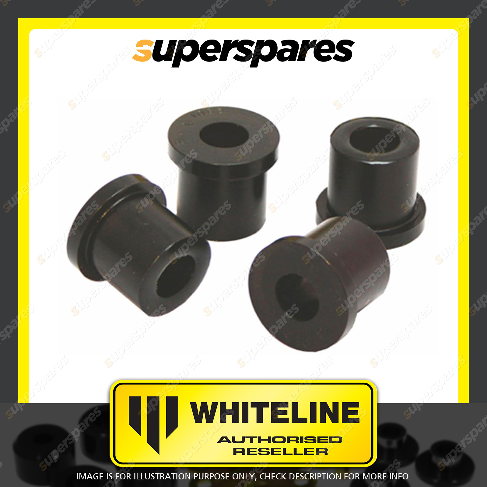 | Contents : Whiteline Rear Spring - eye Rear bushing Warranty : 3 Year / 60,000Kms Kit Contents : 4 Bushings, Grease |