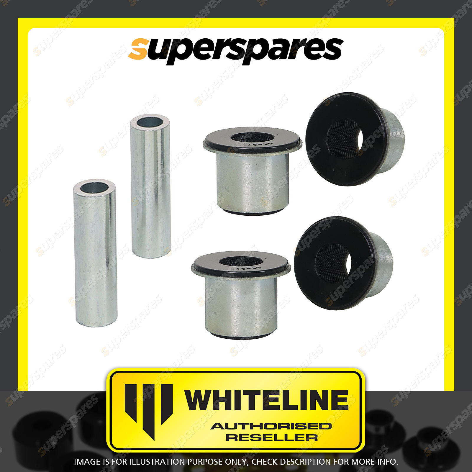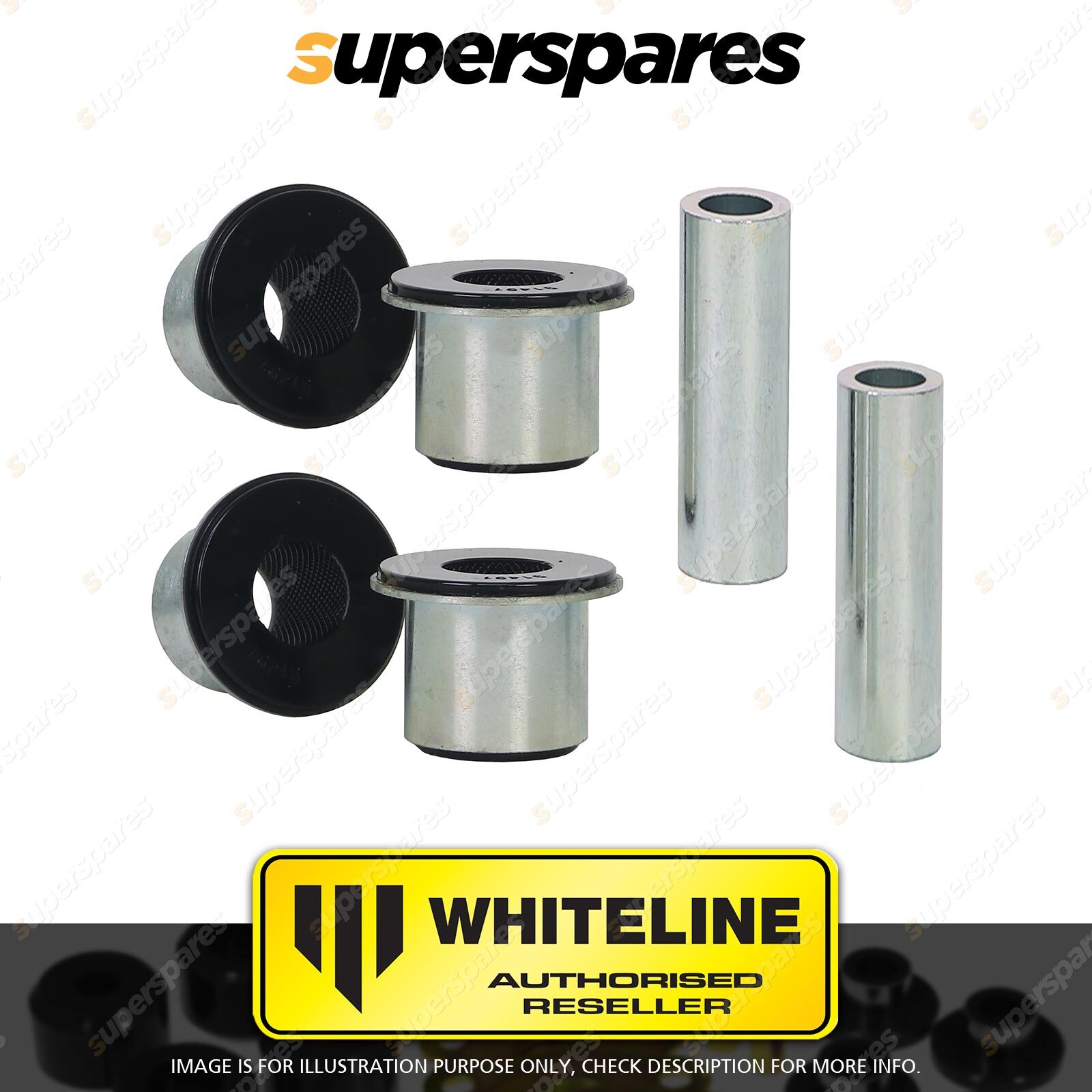 Contents : Whiteline Spring Eye - Rear Bushing Position : Rear Warranty : Limited Lifetime Warranty Kit Contents : 4 Shell Bushings, 2 Tubes, Grease |